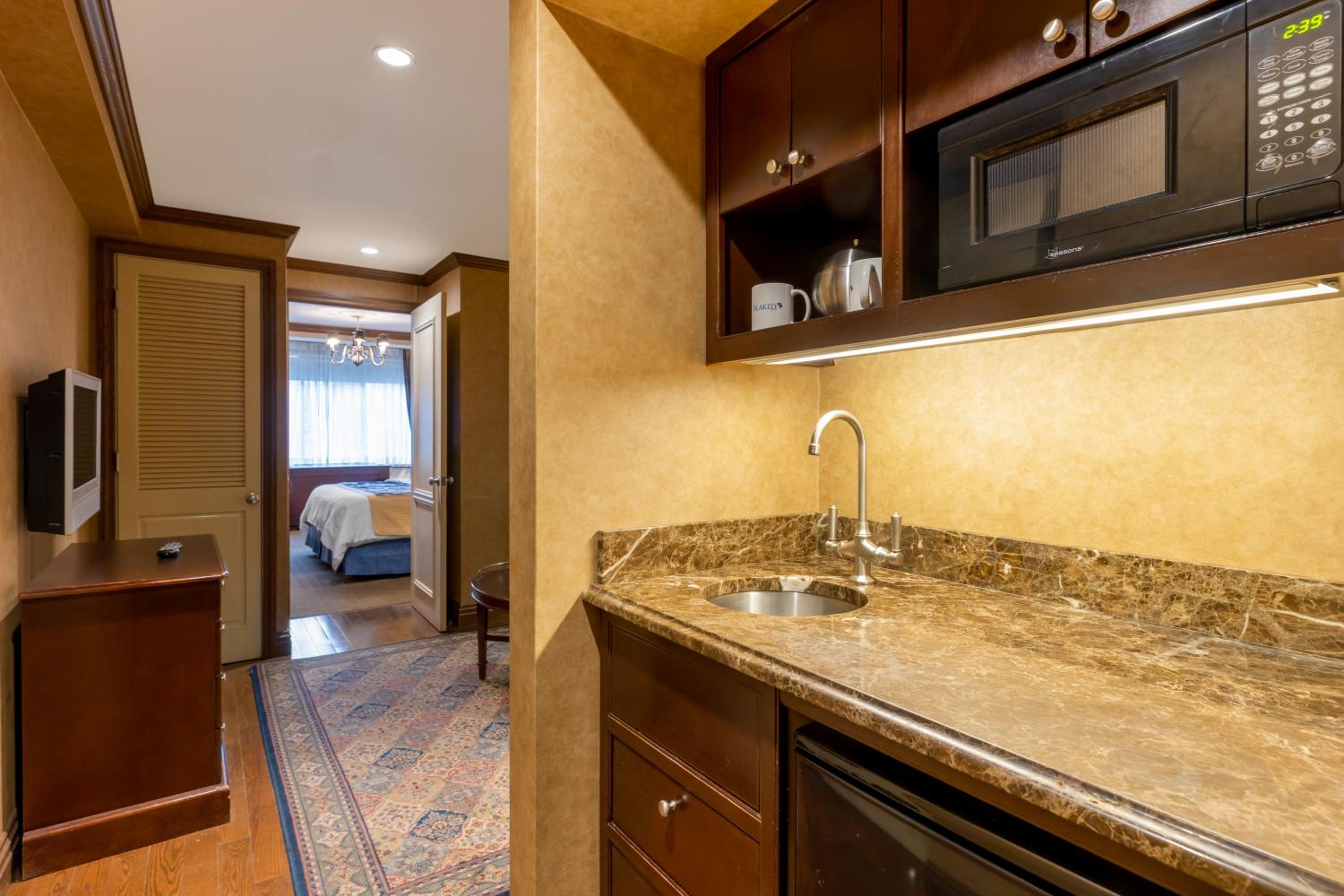 In walking distances to many stores and eateries. Staff very helpful.