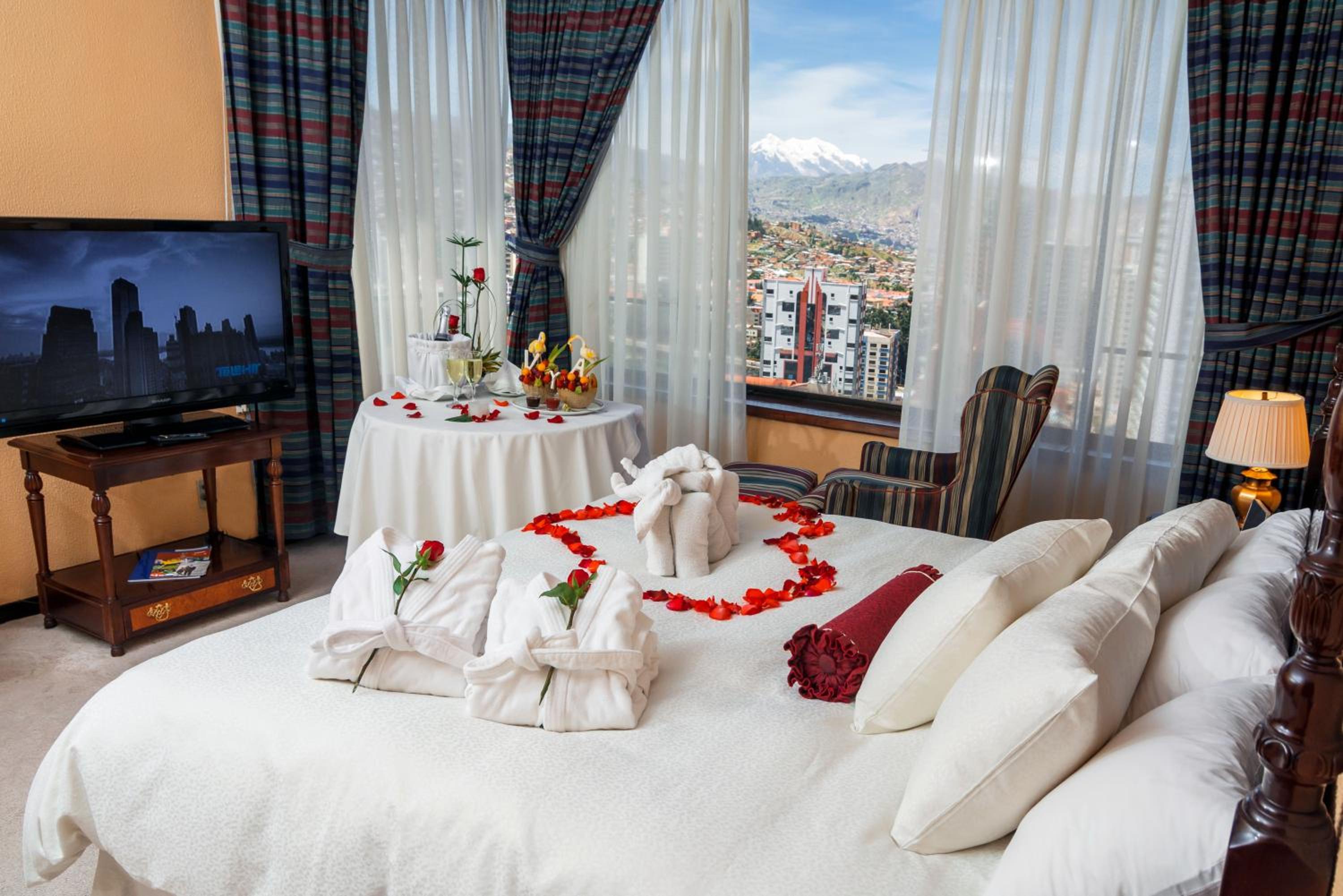 Real Plaza Hotel & Convention Center, a 5-star hotel in the heart of La Paz, offers elegant rooms with free WiFi, room service, and a 24-hour front desk. Guests can enjoy a delicious breakfast with buffet, continental, and American options.