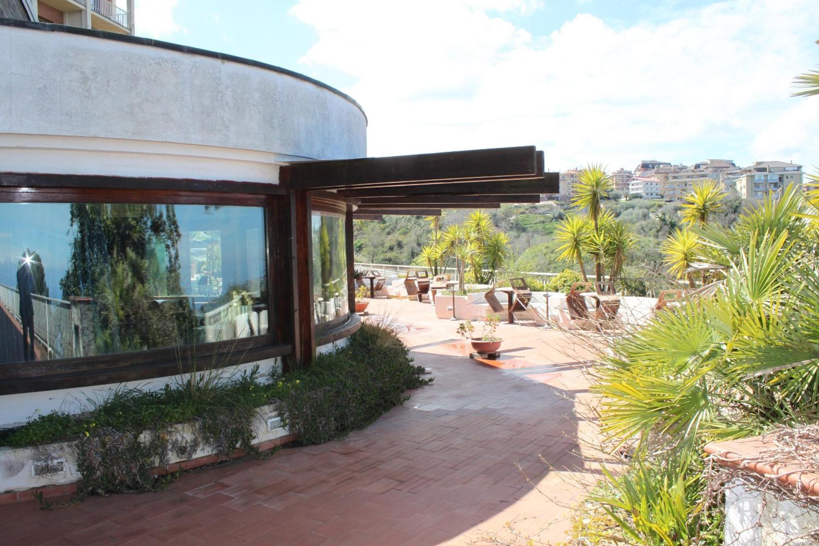 Una bella struttura all'ingresso della città provenendo dal mare. L'hotel avrebbe grandi potenzialità e potrebbe essere meglio valorizzato. Ci sono spazi enormi e mi rendo conto che non è facile da gestire con il poco personale a disposizione. Bella la hall che ricorda una nave da crociera. Abbiamo trovato gentilezza e disponibilità da parte di tutto il personale. La nostra camera era grande e confortevole. Una bella ed attrezzata piscina ha completato il nostro piacevole soggiorno. Per l'ottimo rapporto prezzo qualità lo consiglio.