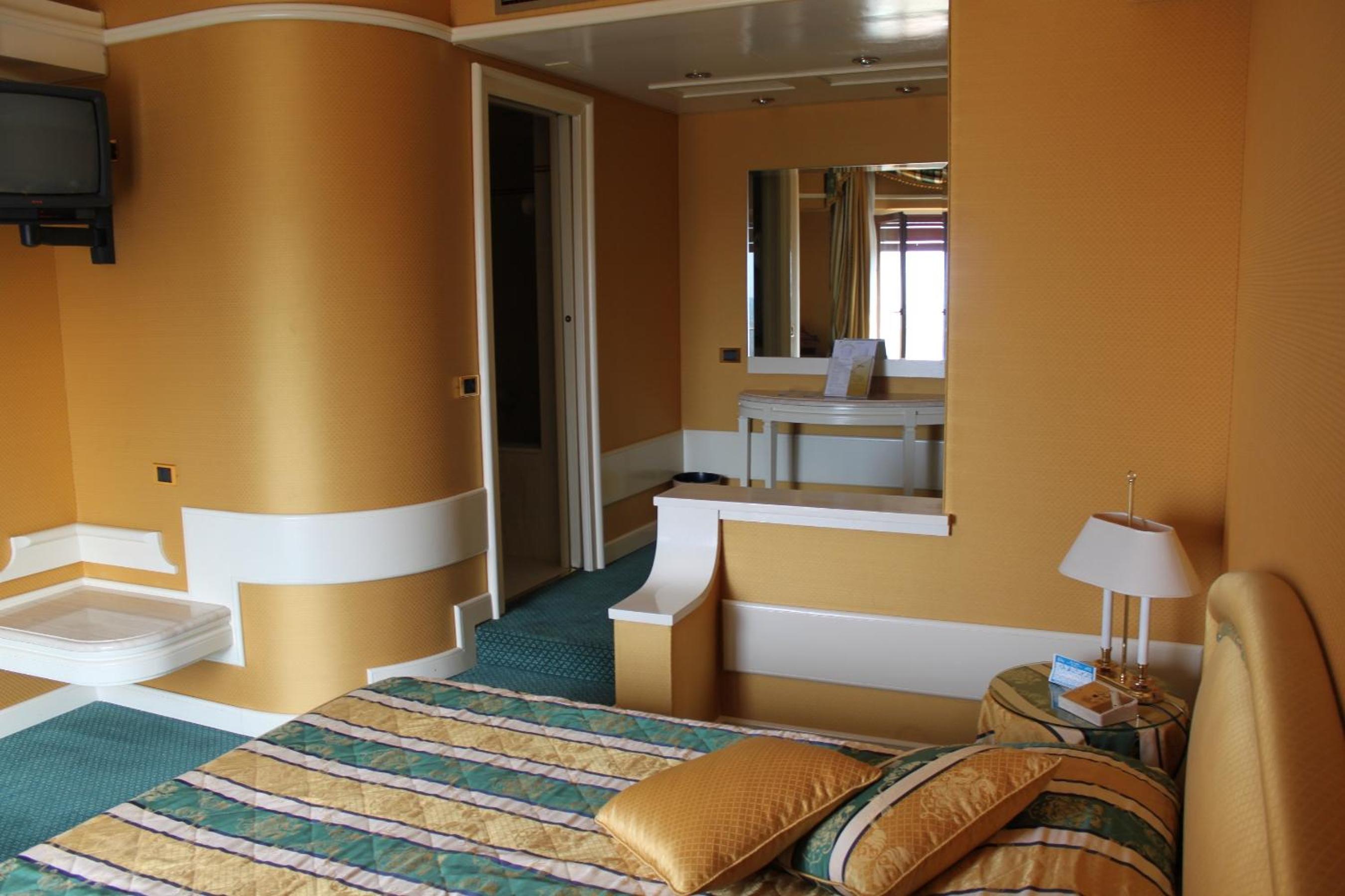 Arrivato in albergo mi rendo conto che è tutto rimasto fermo agli anni 70. Arredi e biancheria compresa. Ma andiamo oltre , del resto le foto non lasciavano spazio alla fantasia . Mi stavo per addormentare quando l’ospite della camera confinante entra affacciandosi in camera mia attraverso la porta comune .... non avevano chiuso la porta con la chiave . Capitolo colazione: 20 minuti senza essere servito perché erano presenti solo 2 ragazze che si sforzavano di servire tutta la squadra volley Verona e l’esercito al completo . Oltre 40 persone in sala . Ma se sapete che ci sono tutti questi ospiti organizzate personale extra ! Lascio perdere la qualità del cibo del buffet .ricordo a tutti che l’hotel è 4 stelle ! Me ne sono andato disgustato a fare colazione al bar esterno . Prima di andare via recrimino l’accaduto al ricevimento. Mi risponde con un “mi dispiace “ consapevolezza dico ....