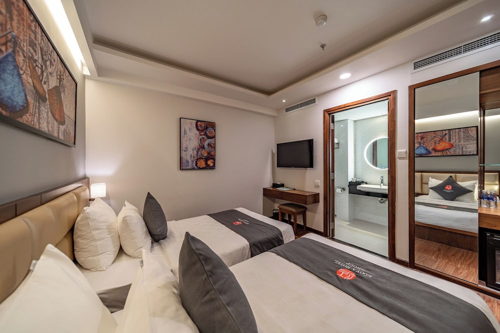Beautiful trendy hotel in the heart of district 1 walking distance from Ben Than market and majority of the sights. My room was very nice, clean, comfortable and very spacious. Breakfast is nice and offered different options for different travellers, staff speaks English to a degree that you would understand one another. Wouldn’t hesitate to book here again if I visited Ho Chi Minh in the future and I highly recommend it.