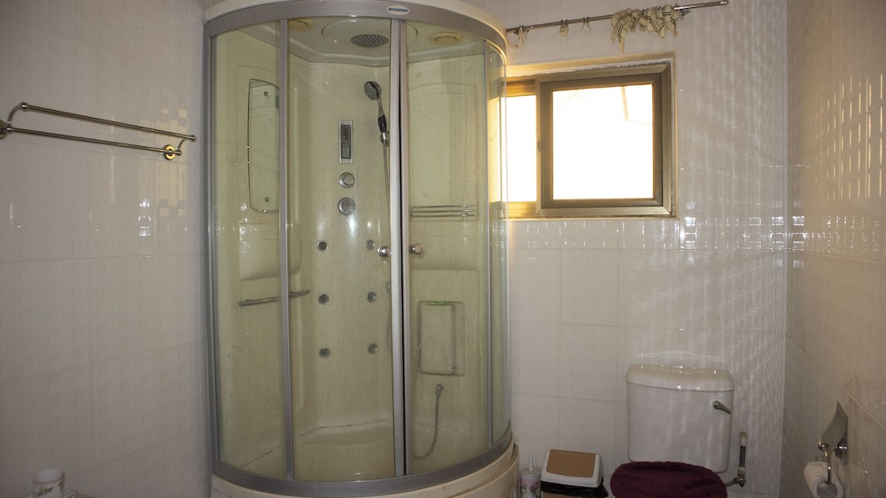 Toilet in room did not flush. No shower Curtain or window curtain in bathroom/ no privacy.