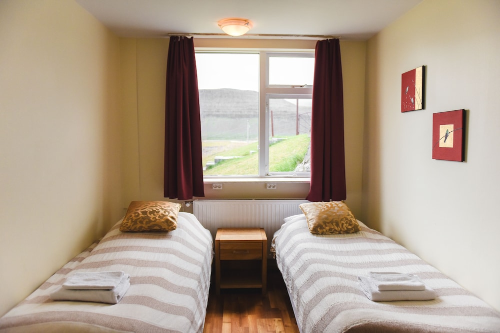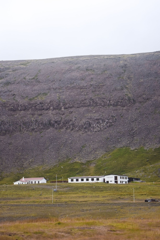 Vieux locaux , mal insonorisés avec vue montagne pour 281€… pour la vue mer , il faut payer encore plus cher. Et pour ce prix là, quand j’ai demandé si on pouvait faire une lessive, la patronne m’a envoyé bouler en me disant d’aller au camping à 10 km😡 alors que il y avait 5 machines à laver inutilisées dans la lingerie. Petit dej ok. A 22 km des falaises des macareux. Meilleur choix à Breidavik.