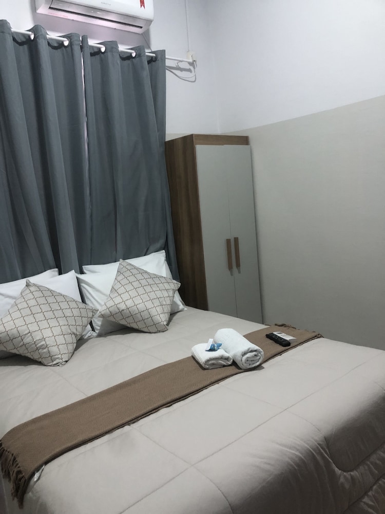 Foi de razoável para ruim, as fotos do hotel acabam por enganar os hóspedes, na foto apresenta ser um hotel simples, porém não apresenta ser tão velho quanto é, o quarto é muito pequeno, a roupa de cama de péssima qualidade e ainda bem velha, também tinha uns fios de cabelo no lençol, tinha um cheiro forte de produto de limpeza, porém não estava muito limpo, não é um hotel que eu indicaria para alguém.
