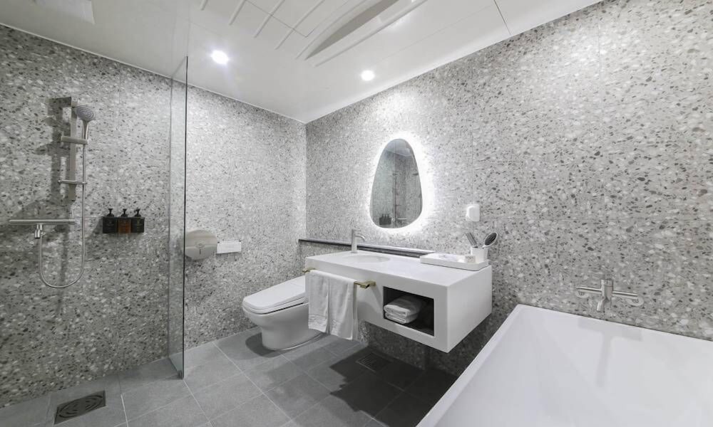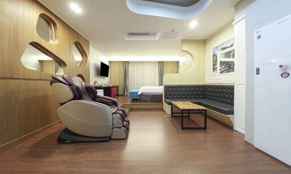 안마의자, 스타일러 맛있는 아침식사 등의 시설이 너무 좋았습니다. 하지만 방바닥에 발바닥이 자꾸 달라 붙어 많이 불쾌했습니다. 작진 않지만 방에서까지 슬리퍼를 신기가 좀 그렇더라구요..