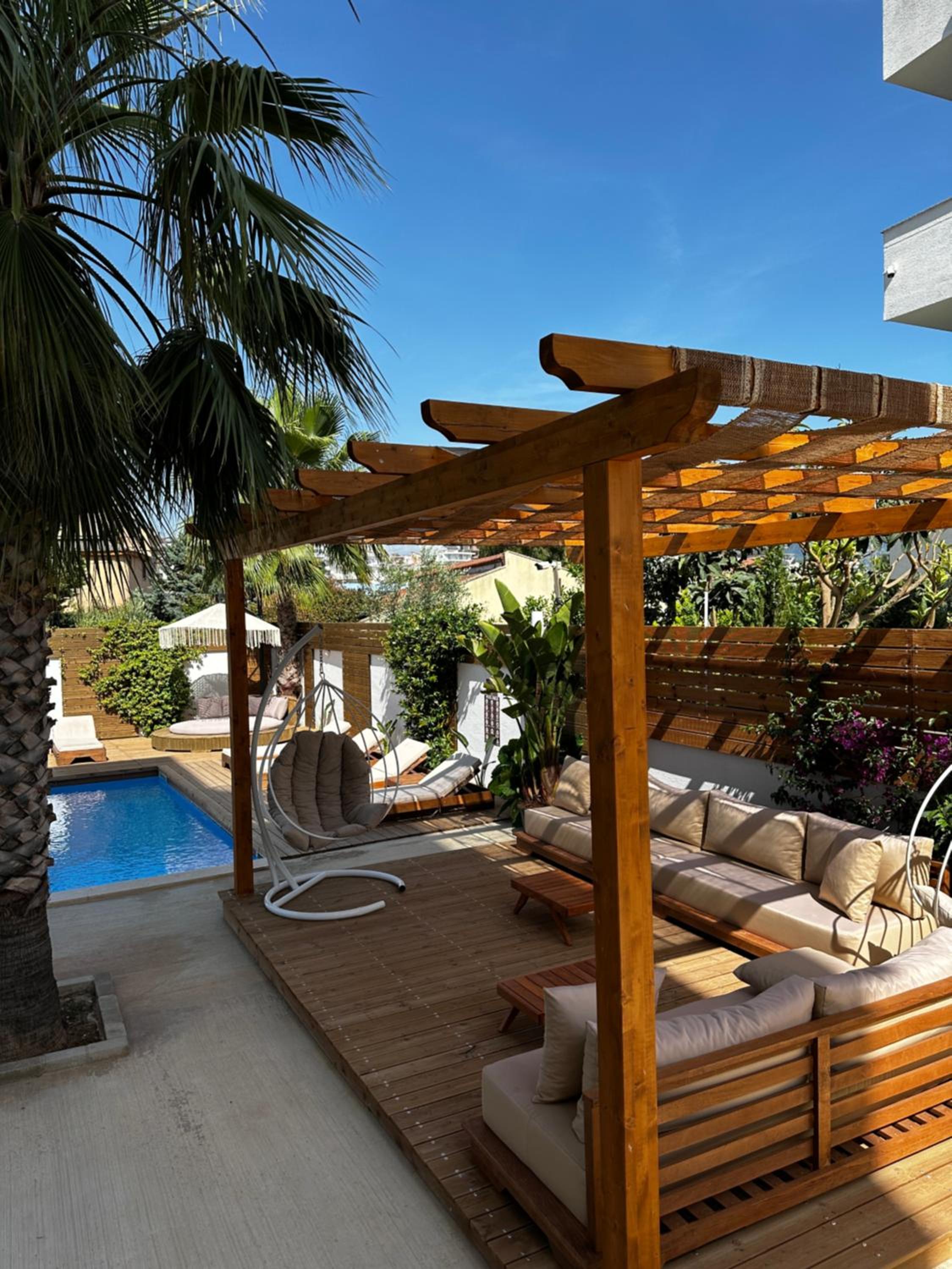 Good location, walking distance to bars, restaurants and beaches. Near bus stop to Butrint and Saranda. Nice pool.