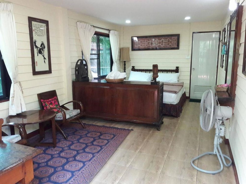 We arrived later in the evening and they happily found our reservation and checked us in. (3 people in 2 rooms.) The front desk woman some say is grumpy was totally lovely with us. We had the most expensive rooms (~$24) and they were very large, clean, well appointed, and honestly fabulous for the cost. The property itself is beautiful, an oasis in the middle of the old city. The included breakfast is basic but good consisting of coffee/tea, eggs, toast and fruit. We walked all over the old city and nearby. We booked tours further through the front desk and they were very helpful and the tours were good. The old man dog Nuah is still there and is happy to nap or say hello. We ran out of time our last day and they happily extended late checkout (half the daily rate). We would happily recommend Gap’s house and will stay there again if we visit Chiang Mai in the future.