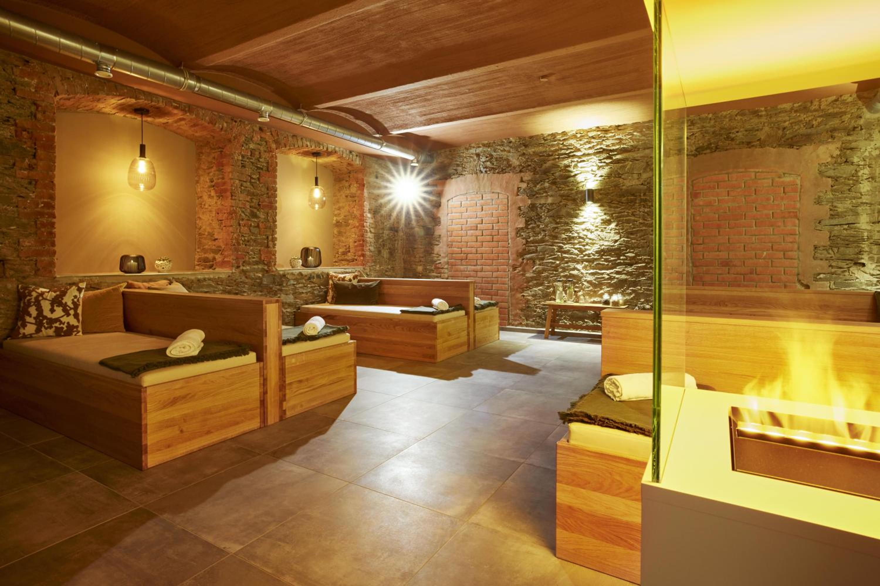 Experience comfort in rooms adorned with warm hues and elegant antique wall lights, capturing the essence of a bygone era.