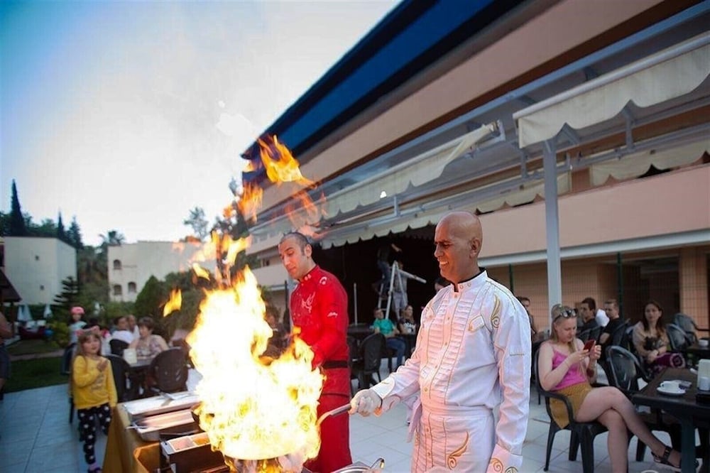 Oteli 1 saat içerisinde bulup rezarvasyonumu yaparak konakladım. İlk izlenimin resepsiyon görevlisi kısa boylu yabancı bir arkadaş sağolsun hemen yardımcı oldu. Yemek saatinin bitmesine 15 dakika kaldığını hemen yemeğe geçebileceğimizi ve bu sürede odamızı hazırlatacağını söyledi. Yemekler orta seviyede. Beklentiniz çok yüksek olmasın ama kötü değil bunu söyleyebilirim. Otel çalışanları özellikle mutfakdaki ahçılar biraz soğuk insanlar sebebi nedir bilmiyorum. Havuz fena değil kötüde değil. Oda temizliği gayet güzel klimalar çok iyi çalışıyor. Odada tv de 5-6 tane kanal olması bundan 2 tanesi türk kanalı biraz can sıkıntısı yapabiliyor. Otelden konum olarak denize araçla 2-3dk mesafede yürüyerek de 10-15 dakikaya gidilebilir. Fiyat performansa göre orta seviyede bir otel. Beklentiniz Yüksel değilse 2-3 günlük tatil için düşünebilirsiniz.