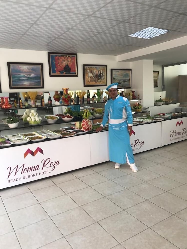Indulge in the sauna, fitness center, and outdoor pool at Monna Roza Beach Resort Hotel. Enjoy meals and beverages included in your stay, complemented by various dining options including a restaurant, snack bar, and bars.