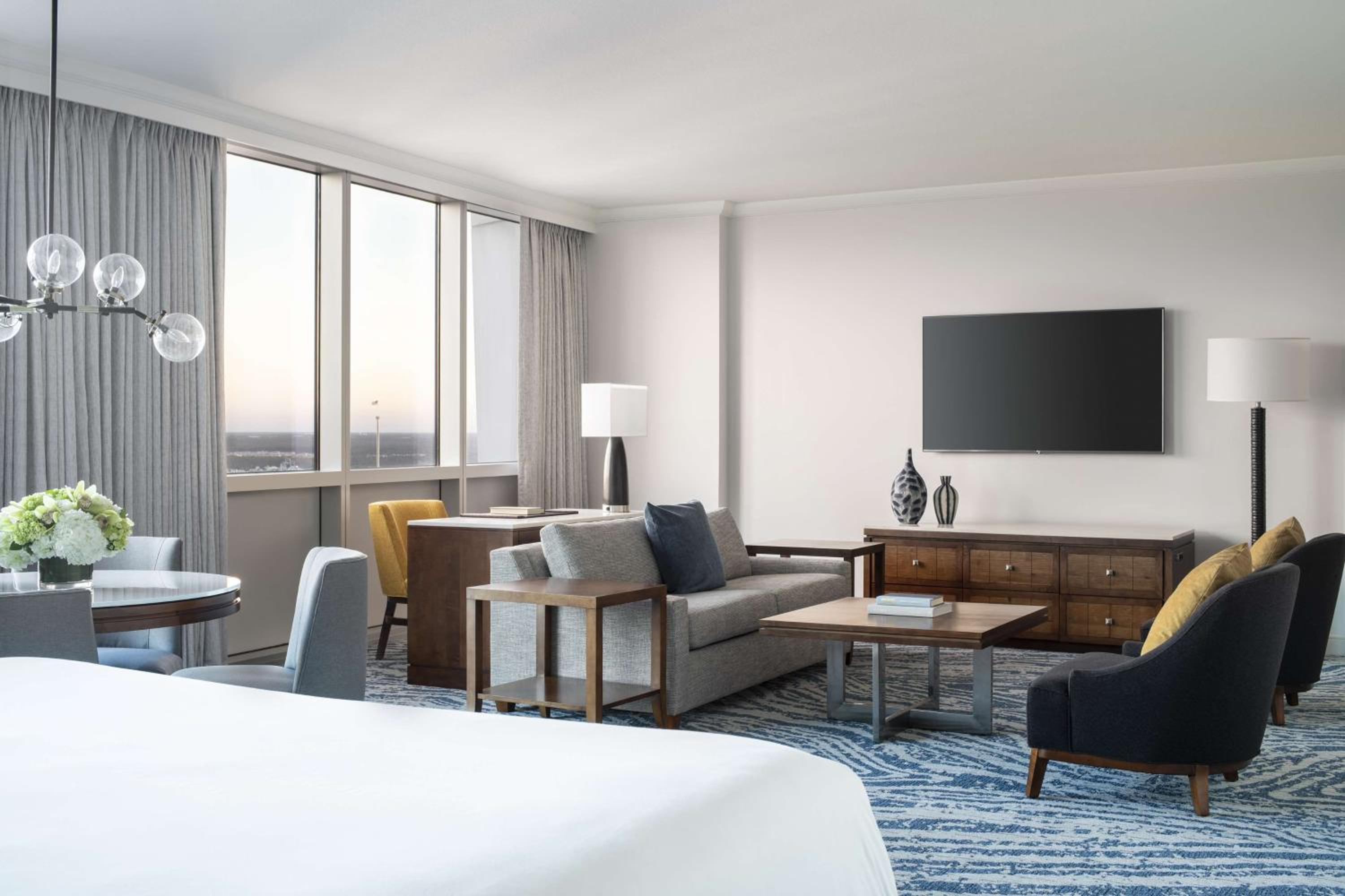 The Hyatt Regency Orlando boasts two resort pools with a waterslide, waterfall, and splash pad, perfect for guests looking to cool off. The full-service spa and salon offer ultimate relaxation, while the 24-hour fitness center caters to those wanting to stay active during their stay.