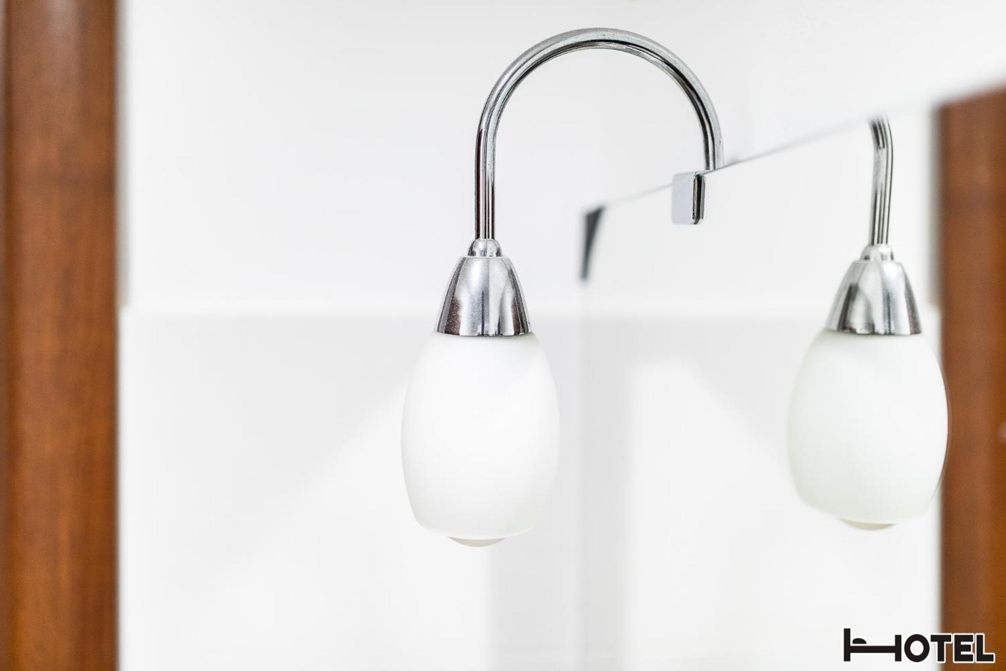 Den ”kalla” belysningen i taket och det var ganska lyhört, inte mellan vårt rum och andra rum utan snarare ut till korridoren och vise versa.