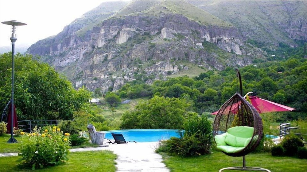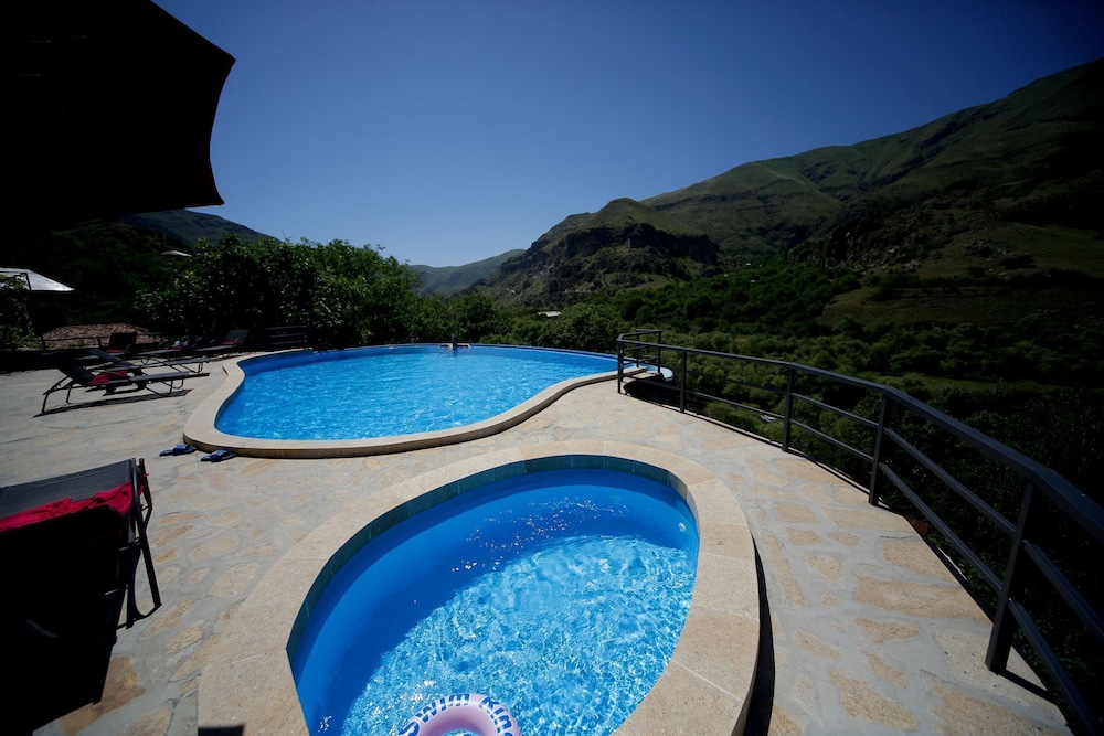 Joli site,sur le flanc d’une colline en face des ruines de Vardzia. Verdure,piscine. Personnel sympathique