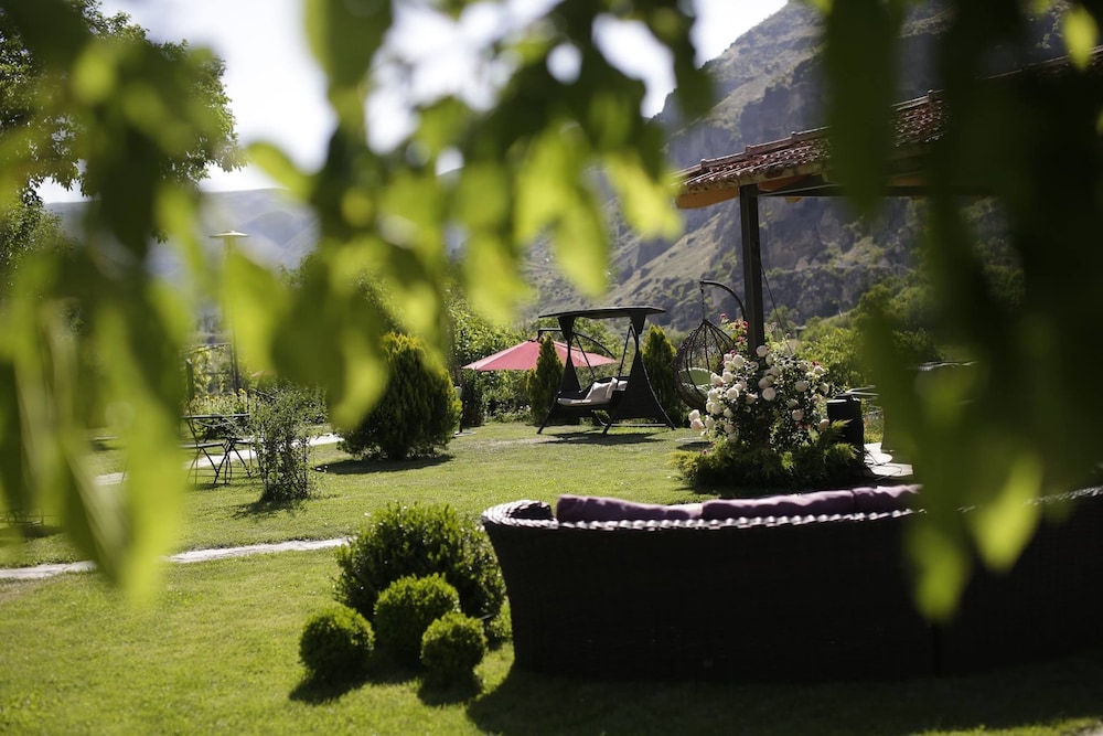 Beautiful view. Includes a balcony. Great location to visit the Vardzia monastery caves. Easy parking. Delicious food with great restaurant staff. Lovely peaceful grounds. We enjoyed our stay very much.