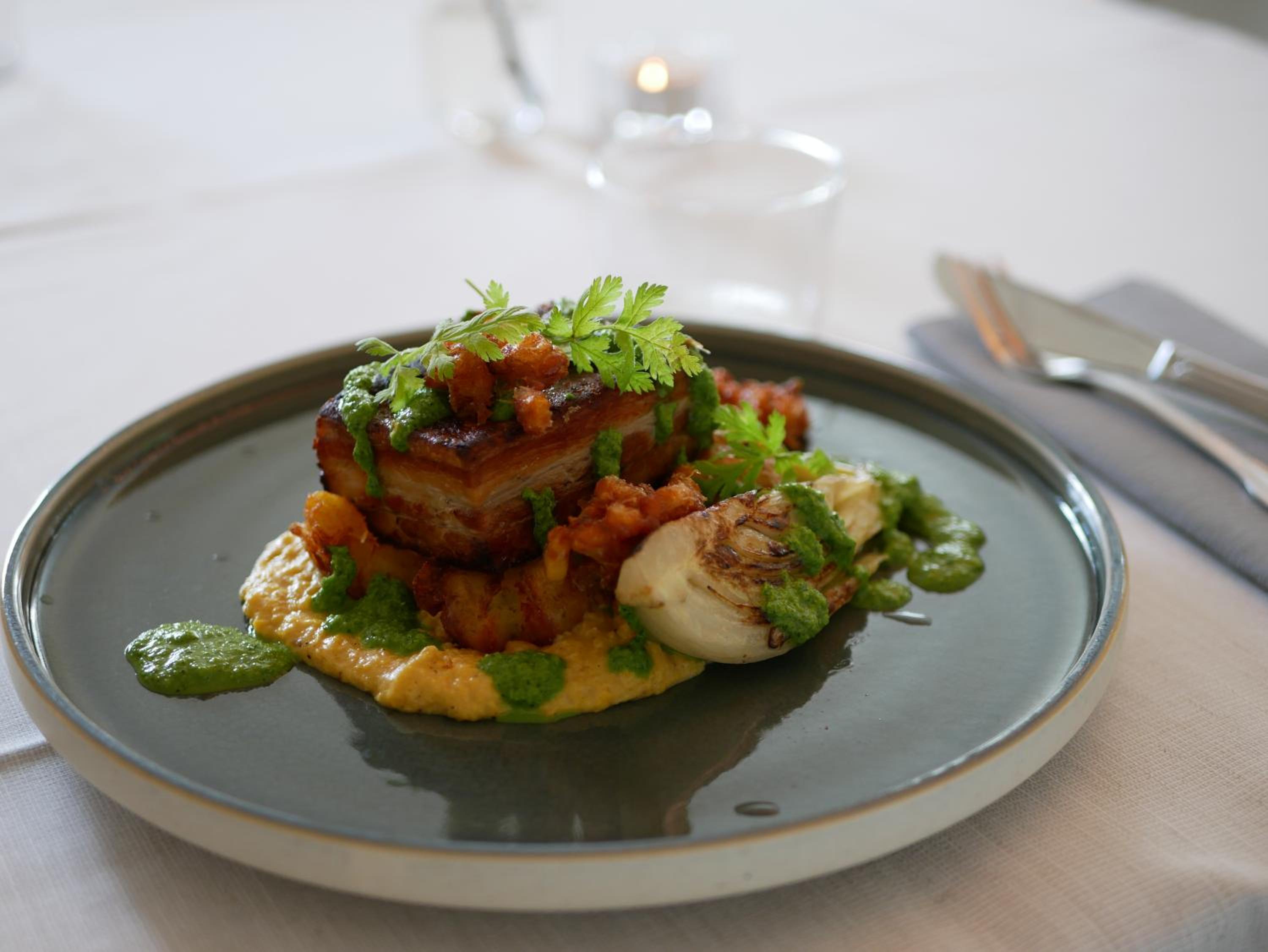 De lokatie is gemakkelijk bereikbaar en ligt op een mooie lokatie tegen een bos aan. Het ontbijt was uitstekend. Maar het diner op de avond ervoor was perfect. We namen beide "Halibut". Erg smaakvol klaargemaakt. Ook het Dessert was heerlijk. Als je gebruik maakt van de accommodatie ga dan ook voor een diner!
