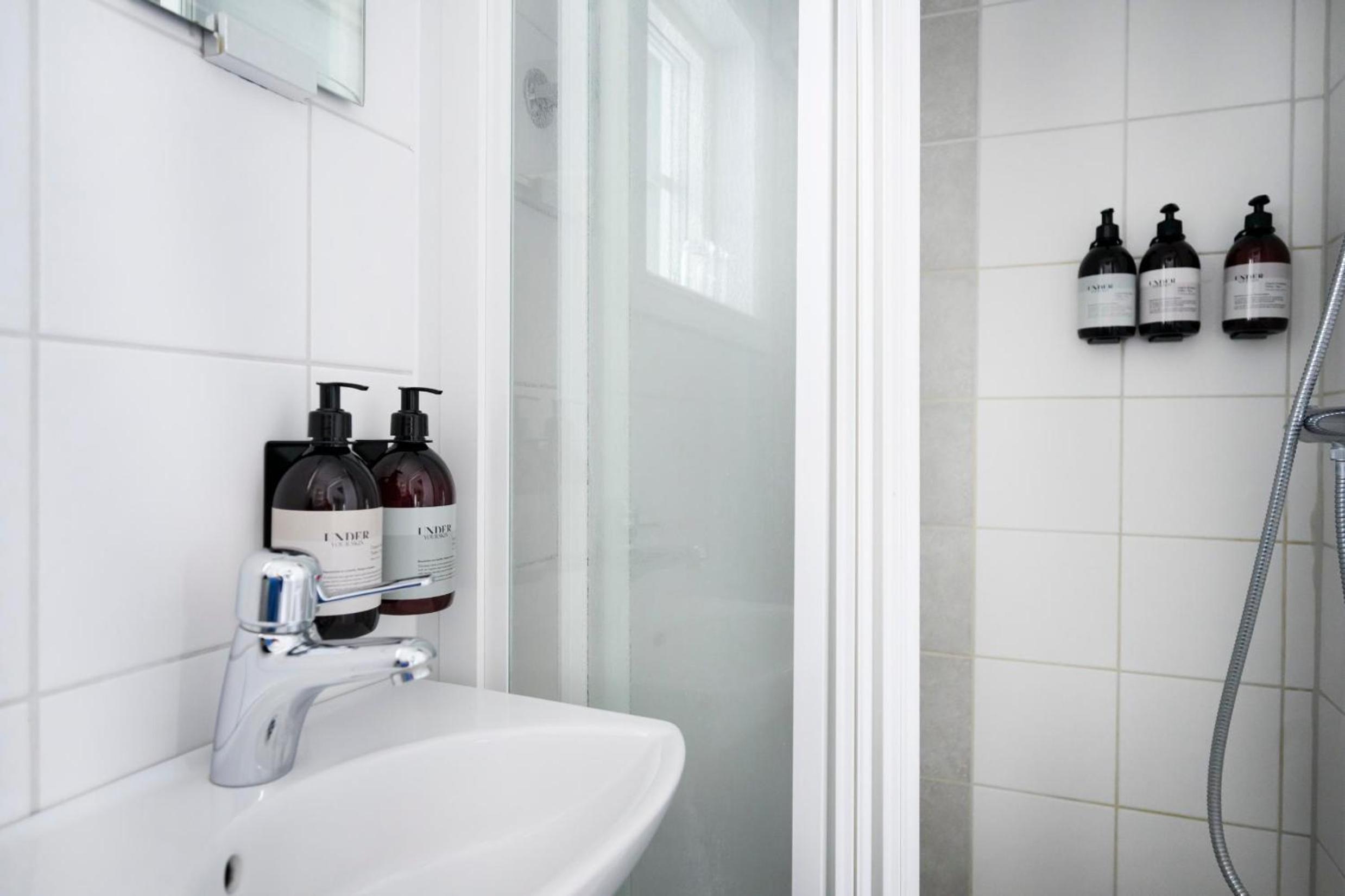 Pyttelitet badrum. Lyhört. Hittade ingen hårtork.