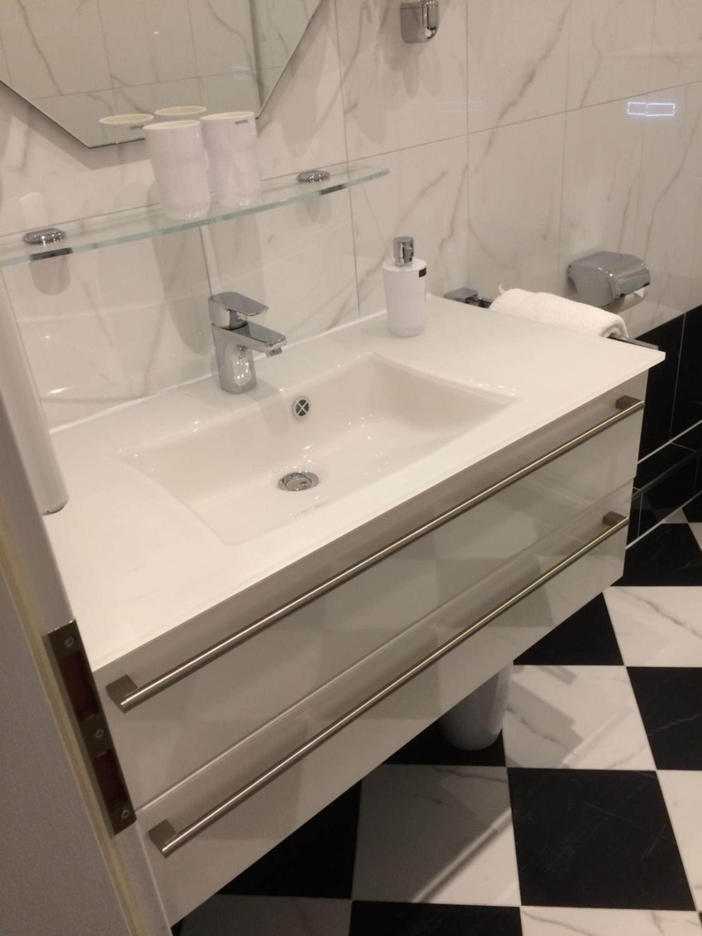 Sehr großes Zimmer, schöne Parkplätze, Frühstück super, besonders die Käse Auswahl