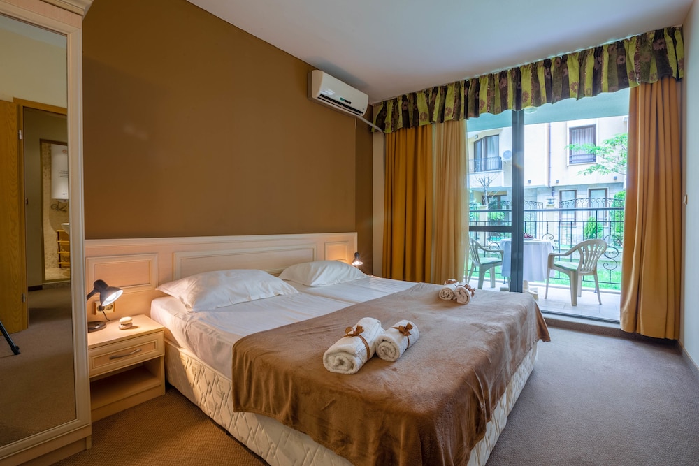 Stay in this smoke-free aparthotel located just a 1-minute drive from Sunny Beach and 6 minutes from Aqua Paradise. Enjoy easy access to nearby attractions like Casino Hrizantema and Luna Park.