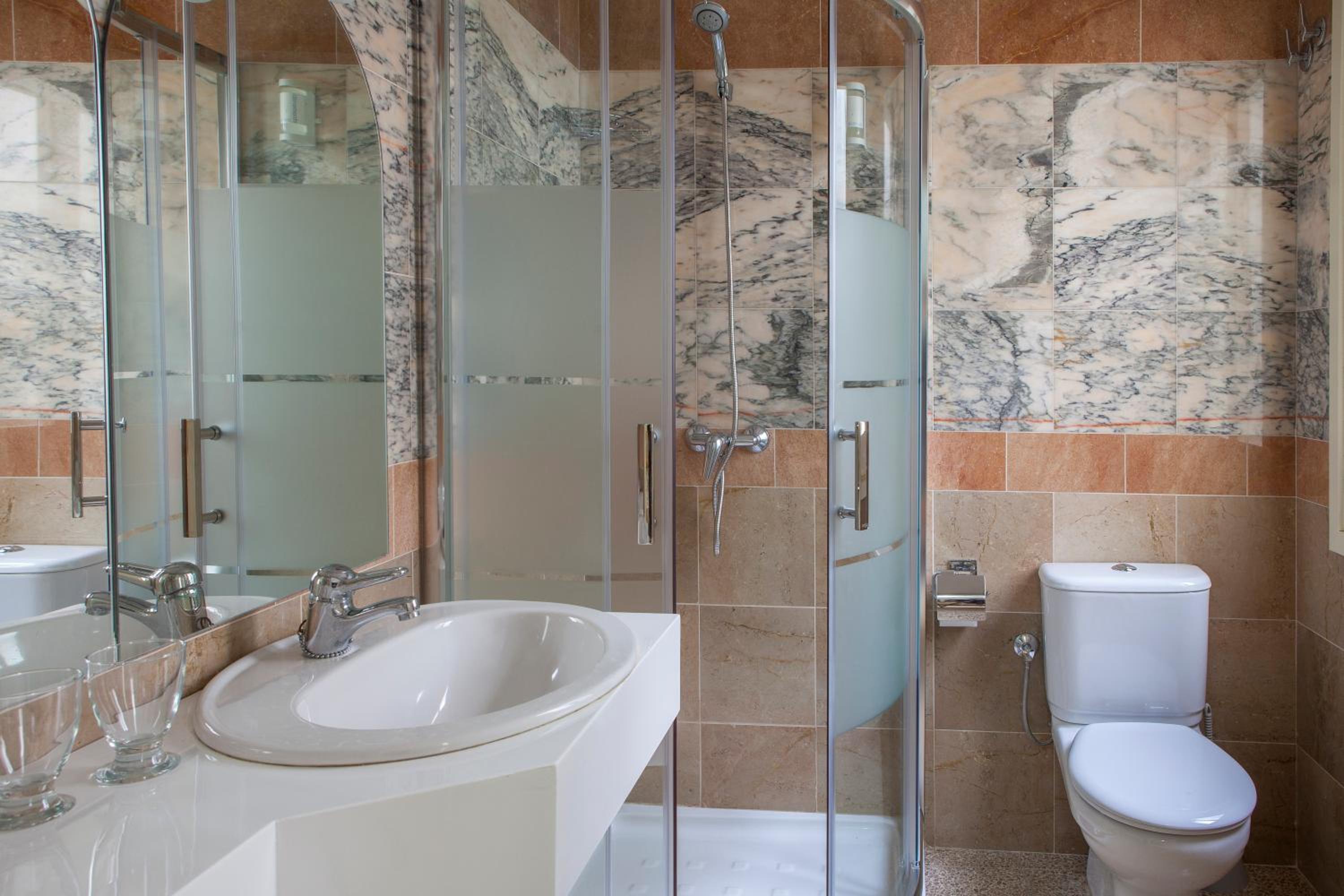 L'hôtel est très central, calme, les chambres et les sanitaires sont très propres et la douche très agréable, c'est le lieu idéal pour une étape en Espagne. Le personnel a fait son possible pour nous procurer ce que nous souhaitions (deux chambres avec deux lits séparés), et la literie était excellente. C'est un très bon rapport qualité/prix.