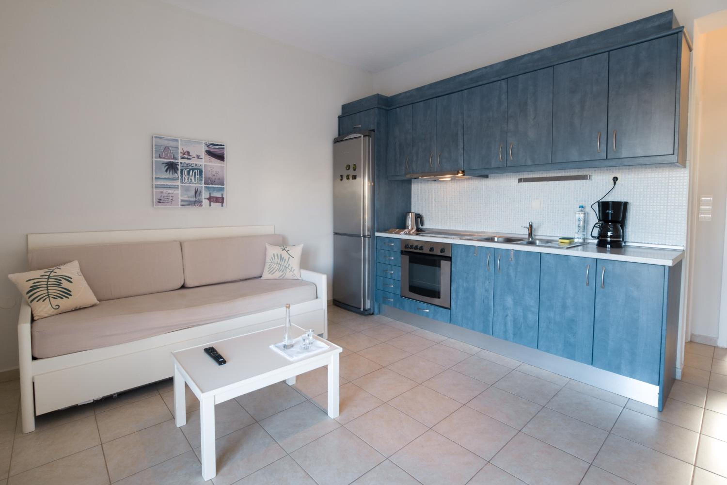 Relaxing Garden and Nearby Beaches: Unwind in the garden or head to the nearby Stalos Beach, Agia Marina Beach, or Platanias Beach for a day of sun and sea.
