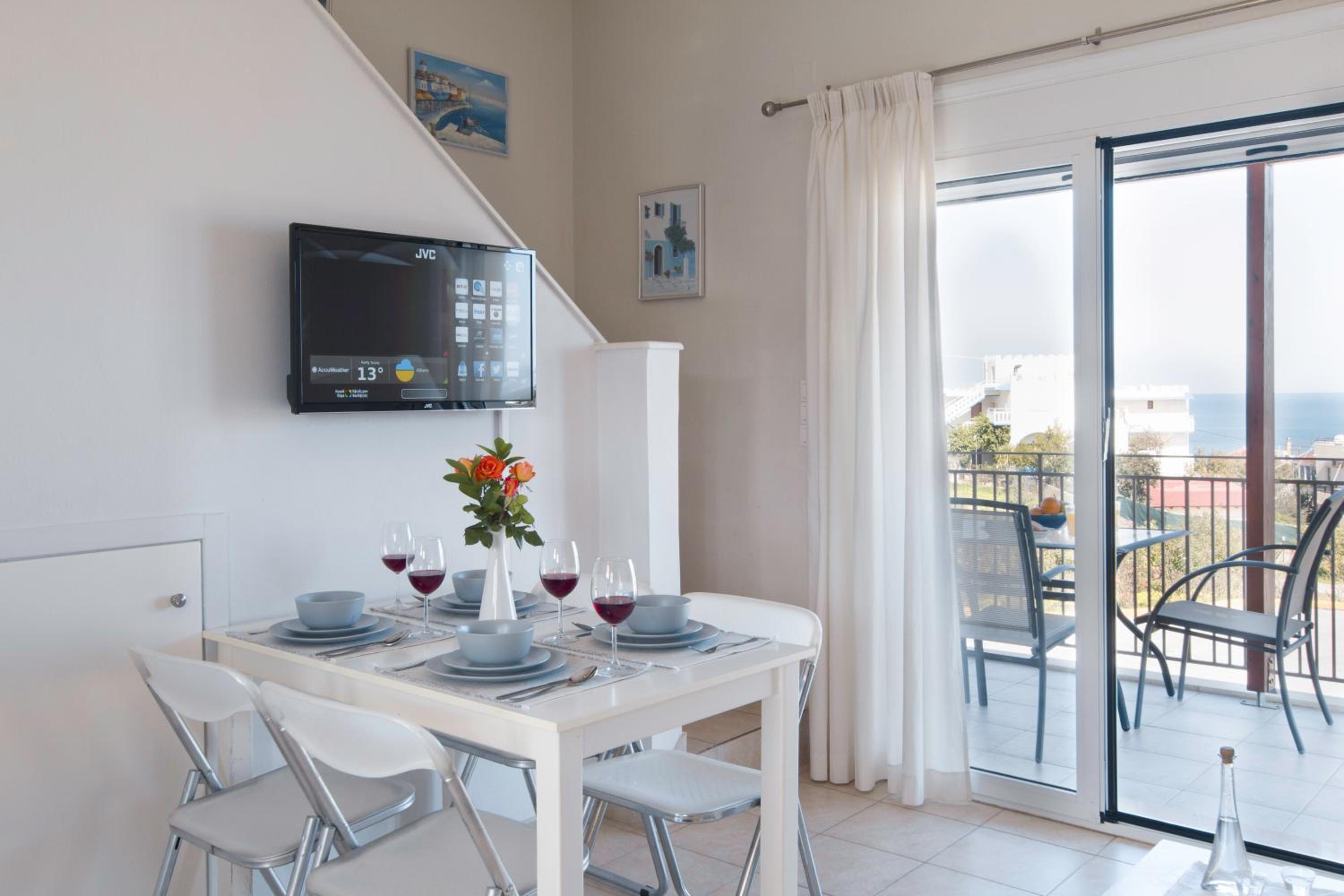 The property was very clean, with all amenities. The owners Vasilis and his wife were super friendly ready to help where needed and provided with everything we needed. The apartments location was very central to restaurants and beach, with very nice views.