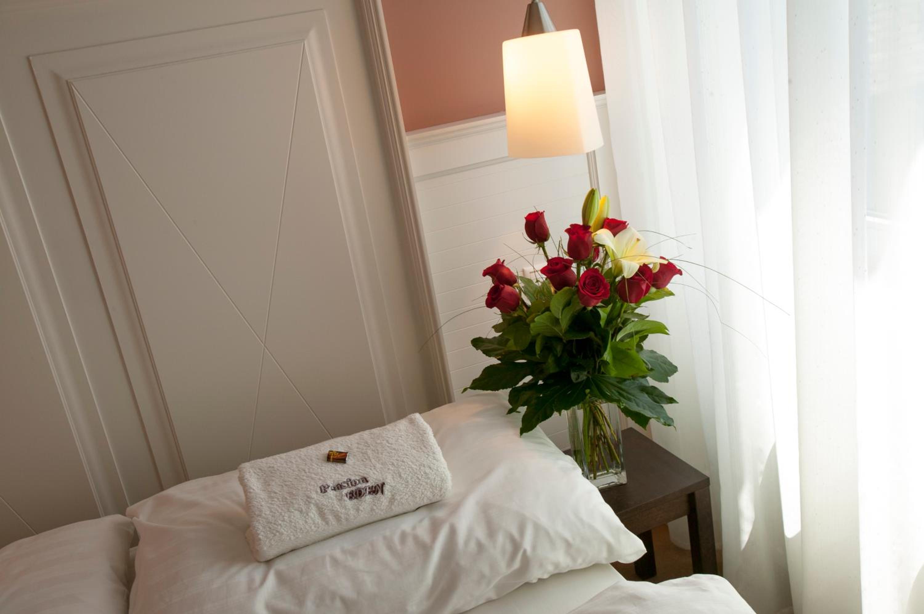 The Pension Eden offers elegant rooms with spacious bathrooms, each equipped with a minibar, free Wi-Fi, and a satellite flat-screen TV. The rooms are tastefully decorated with warm-colored carpets and wallpapers, ensuring a comfortable stay for guests.