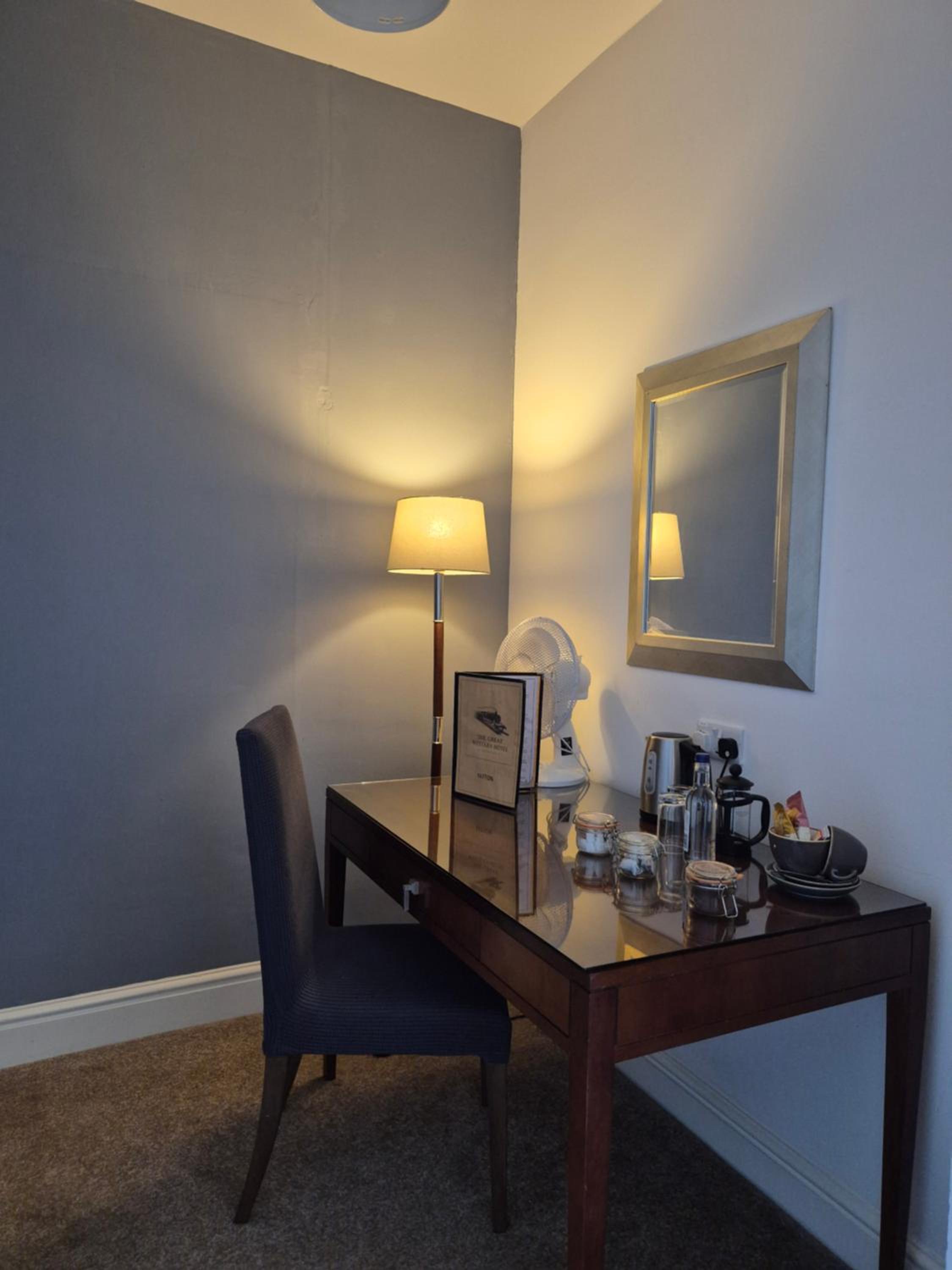 Dirty carpet. Unabke to walk around room as it was toi small (baroiw gap at end of bed). Mo wvening meals. Desk hard to use because if large bin underneath.