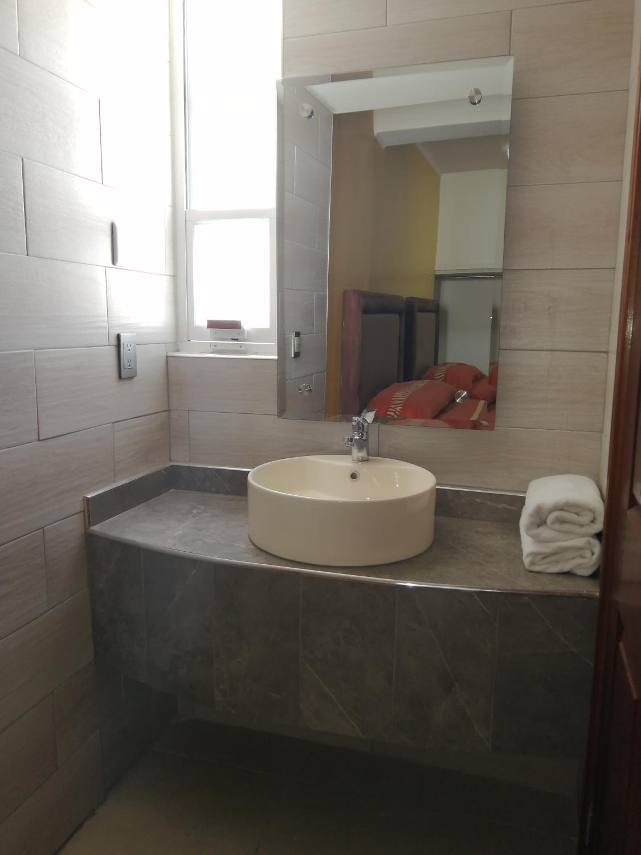 The photos shown on Booking do not reflect reality. The lobby looks nice, but the moment you walk up the stairs, you realize it is a very old building — which wouldn’t bother us at all if it were advertised that way or if any renovations were being done. In our room, the bathroom was falling apart, tiles were coming off, the ceiling was peeling, and the “view” or any hope for a quiet night was nonexistent. All night long we had loud air-conditioning units buzzing right outside our window, placed on a small “balcony” that could have been finished properly — or at the very least, the windows could have been cleaned.