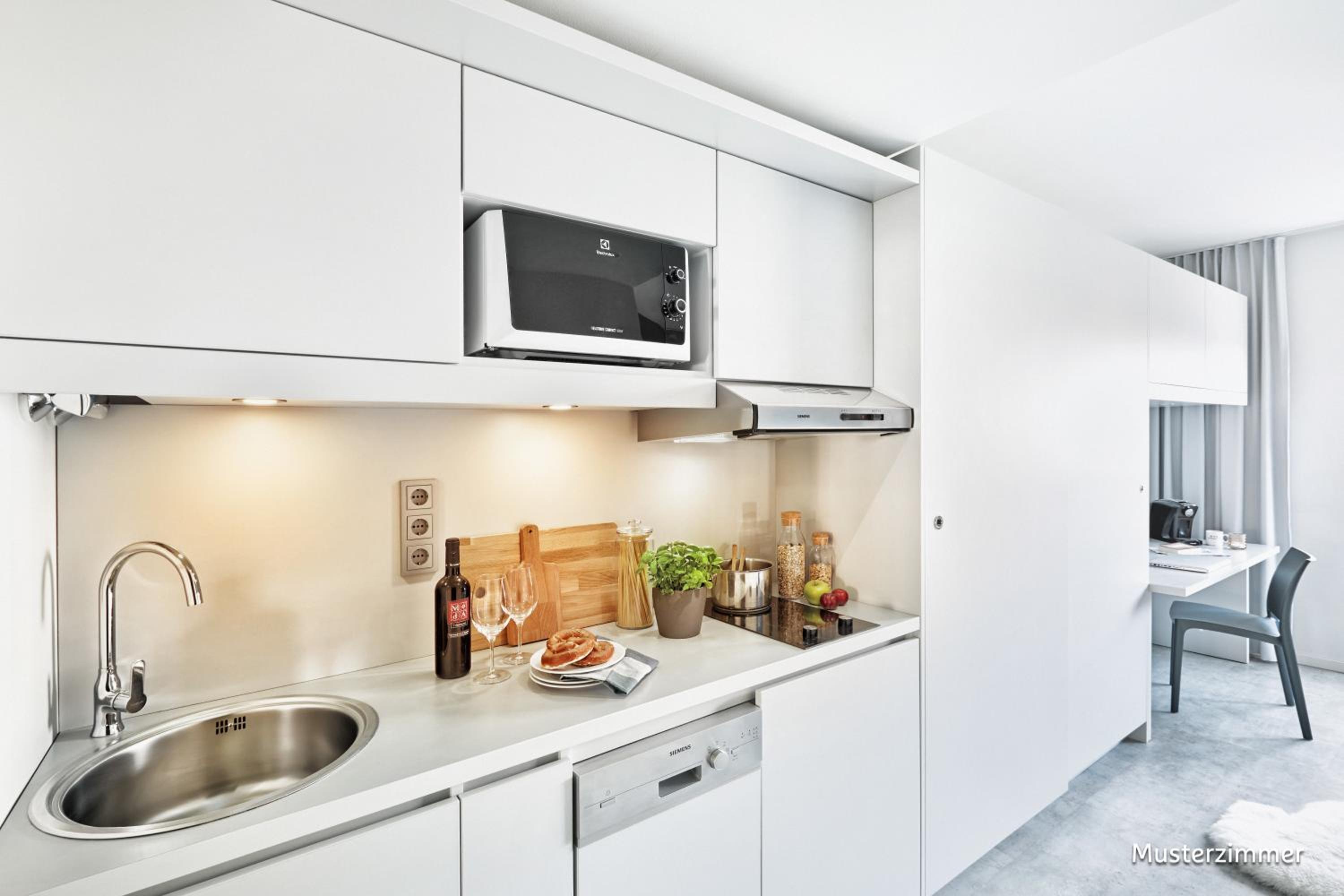 Modern Amenities: Enjoy air-conditioned bedrooms, a fully equipped kitchenette, and complimentary WiFi during your stay at H.ome Serviced Apartments München.