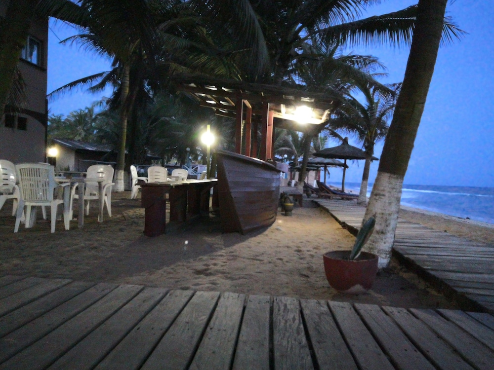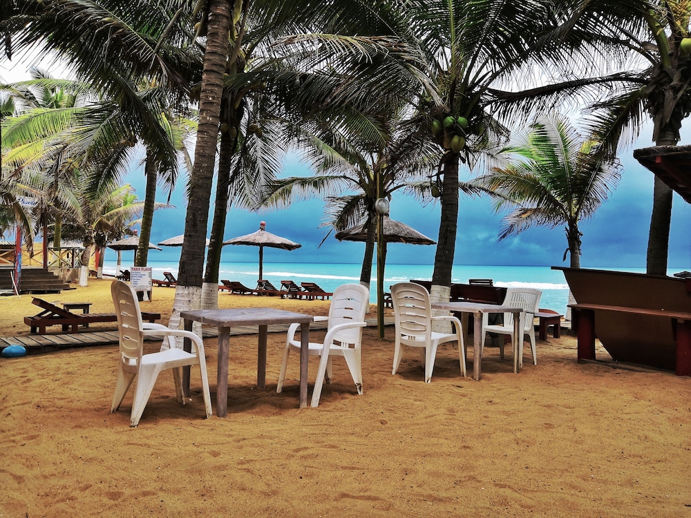 First, there were no signs pointing out the location of Coco Beach Hotel. There was a sign pointing to Coco Beach, but that is a backpacker beach FAR from the real Coco Beach Hotel. It took 2 hours to find the place. No road signs, no street names, phone GPS did not work as soon as we crossed from Ghana into Togo. The hotel is in an odd area with big manufacturing all around, cannot see the sea from the highway where you are supposed to turn. Not easy to find. But once there, it is a pleasant place, clean rooms, clean linens, nice beach with breakwater so you do not get swept away by the undertow, and nice pool area. The problem with the room was that I had booked a room with an ocean view, and we got put into a tiny room with no view, that cost half of what I had prepaid. The next night we were moved to a bigger room, with a bigger bed, but it also had no view. We also had a struggle to convince management to credit us for the first night room. But that was eventually taken care of. My companion speaks Ewe, the local language, and I speak a bit of French. So communication was rough but OK. The second room was nice, the bed was comfortable, the fridge worked. But in both the rooms, the bathrooms were not exactly sparkling. First, the shower is a pipe sticking out of the wall, no enclosure, no curtain, so the entire bathroom gets wet. The fixtures are old and rusty/calcified. Not pleasant to use. BUT the restaurant is brilliant, and I would go there again, just to eat!