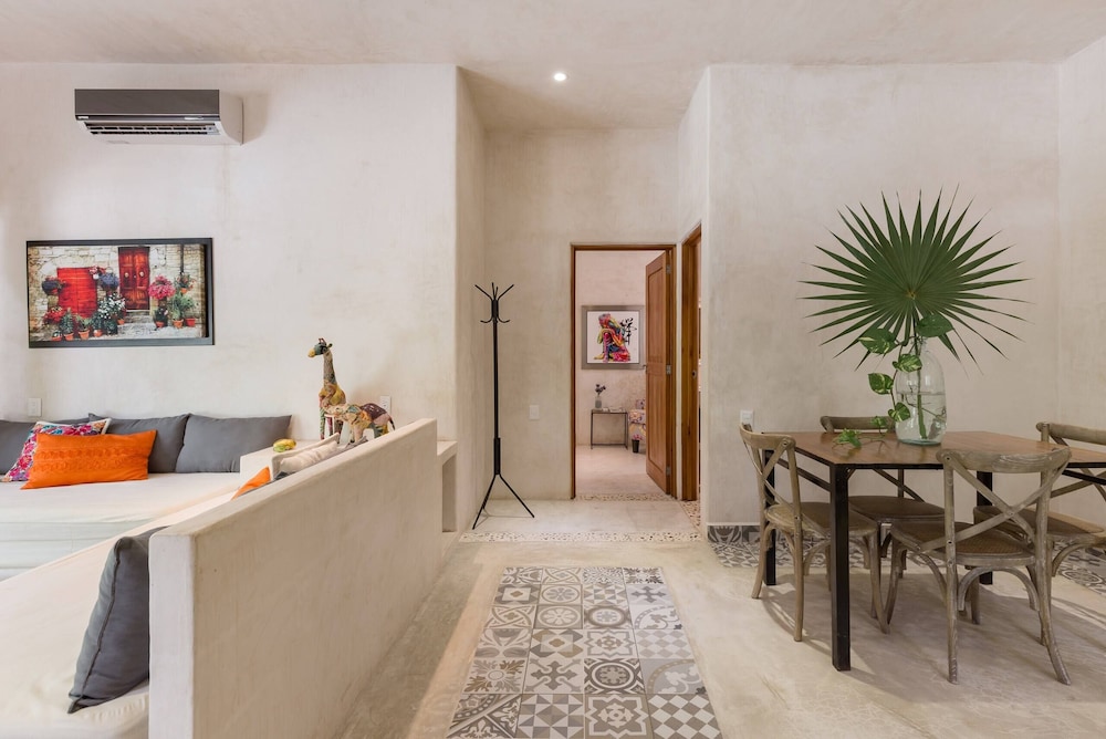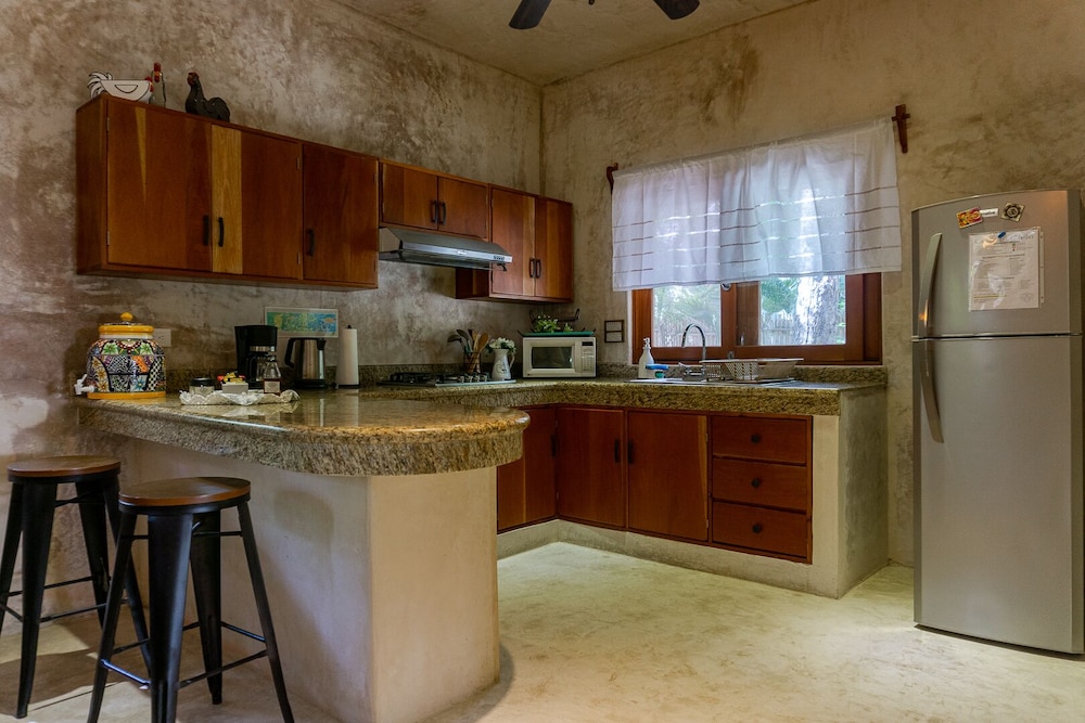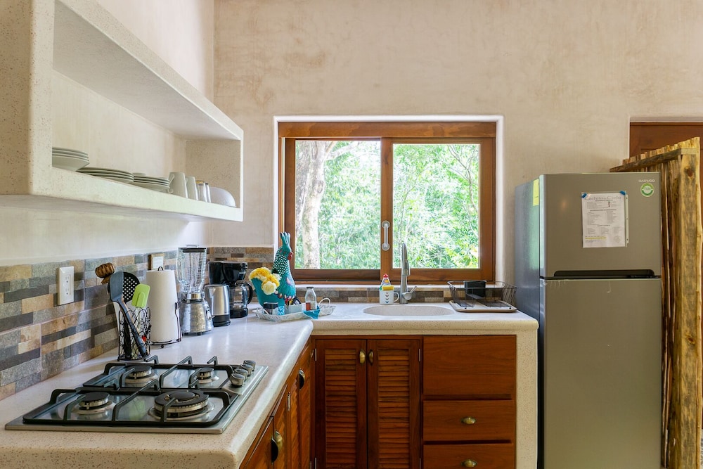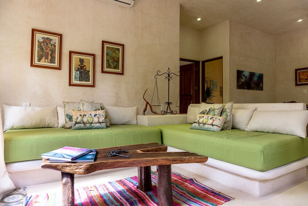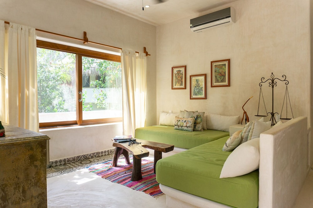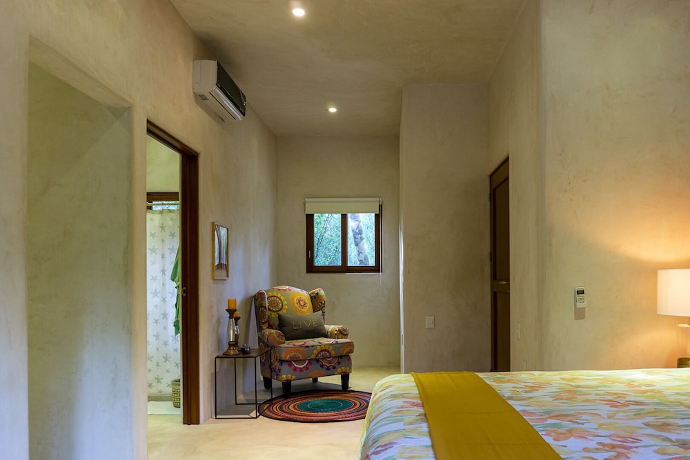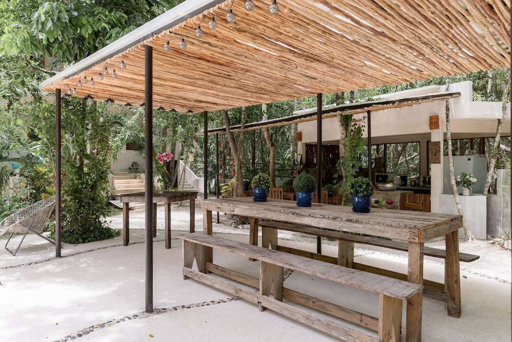 A beautiful property in the jungle but only a 10 min drive to tulum. Very quiet and peaceful, you can see the stars well at night. Great pool area. The hosts, Alberto and Tania are super nice and were a great help with recommendations of places to go and things to see. They were always quick to answer by message when we needed anything. Fluent in spanish and english we had 0 communications problems. My partner and i loved it we felt like being in a home away from home. 5/5.