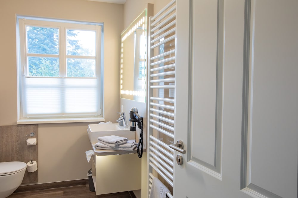zimmer groß und sehr gut eingerichtet, blick ins grüne, bad modern und neu, betten ausgezeichnet