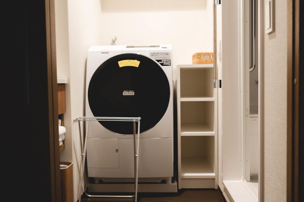 全新的房間,提供洗衣機及洗衣球,不需要和櫃檯chech in,事前上網登錄即可,附近有伏見神社、京阪電車及JR電車、超商,相當方便,不過在安靜的夜晚、馬路上的車聲會特別吵。