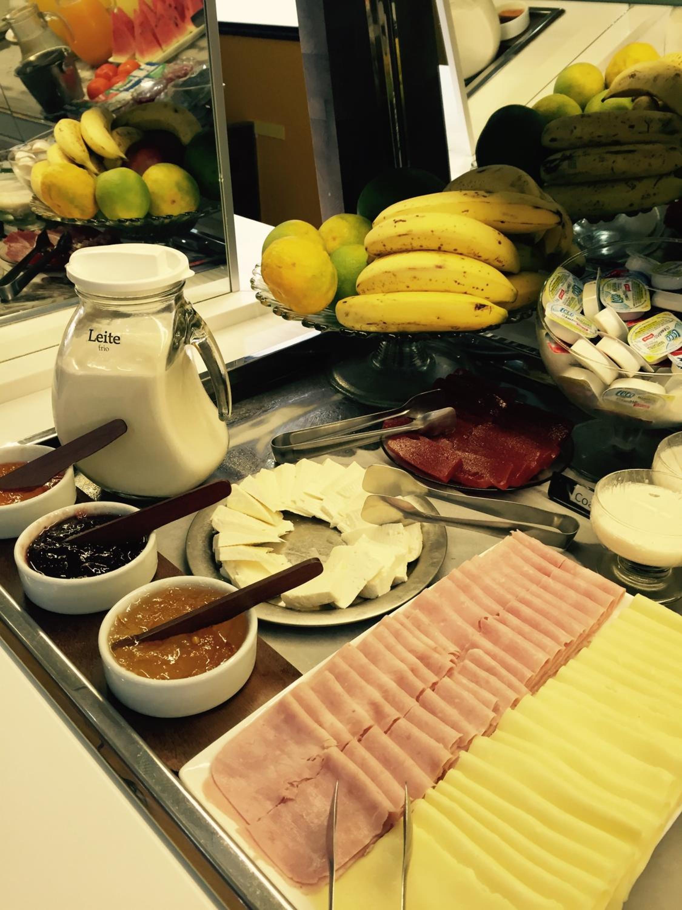 o cafe da manha poderia ser um pouco melhor com mais opçoes de pratos quentes como , linquiça , bacon , salsinha etc , nao tinha manteiga somente margarina ,