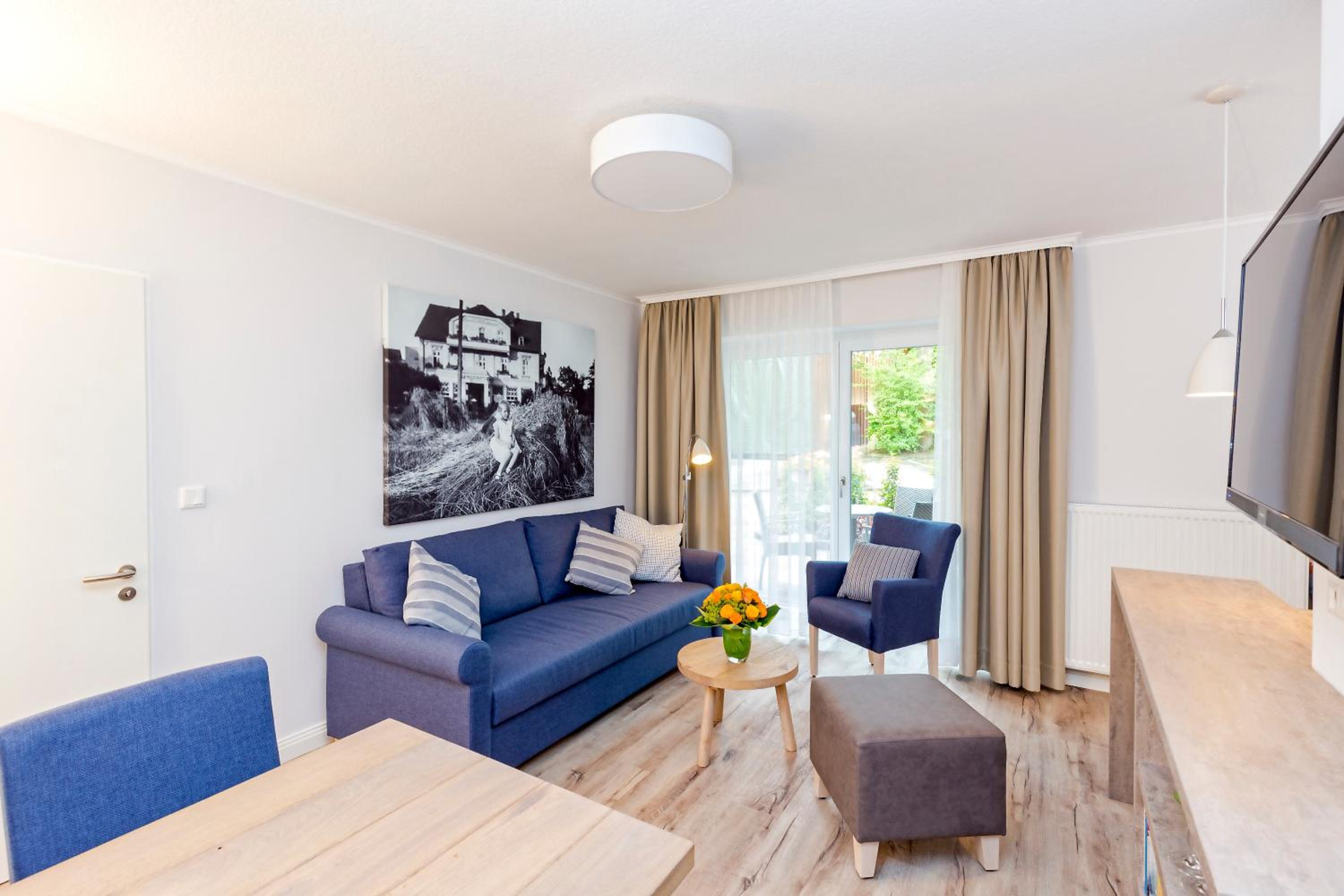 Experience serenity in our charming villa nestled amidst lush gardens. Enjoy the picturesque surroundings while being just a stone's throw away from Kurpark Spa Gardens.