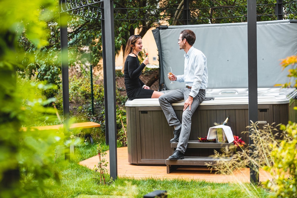Unwind in the spa tub or appreciate the serene garden surroundings, offering a peaceful retreat.