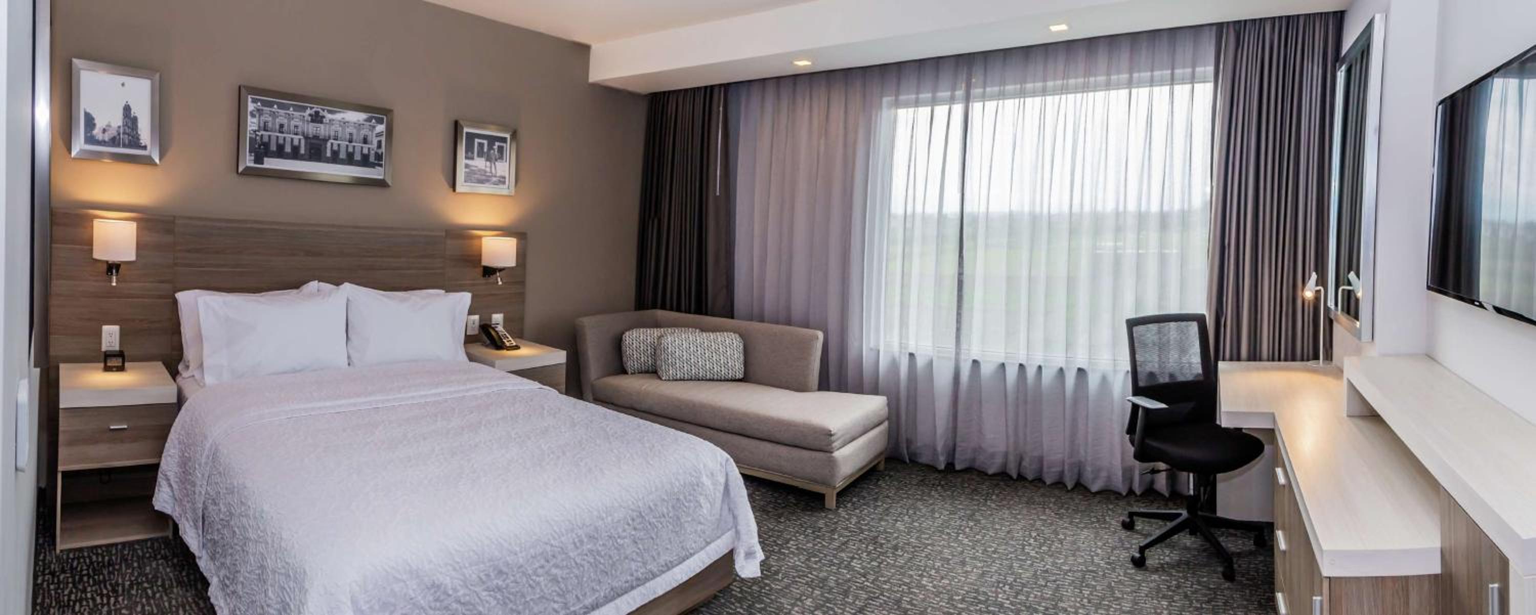 Hampton Inn & Suites By Hilton Puebla offers air-conditioned rooms with modern amenities including a flat-screen TV, fridge, and a private bathroom. Some rooms even feature a convenient kitchenette.