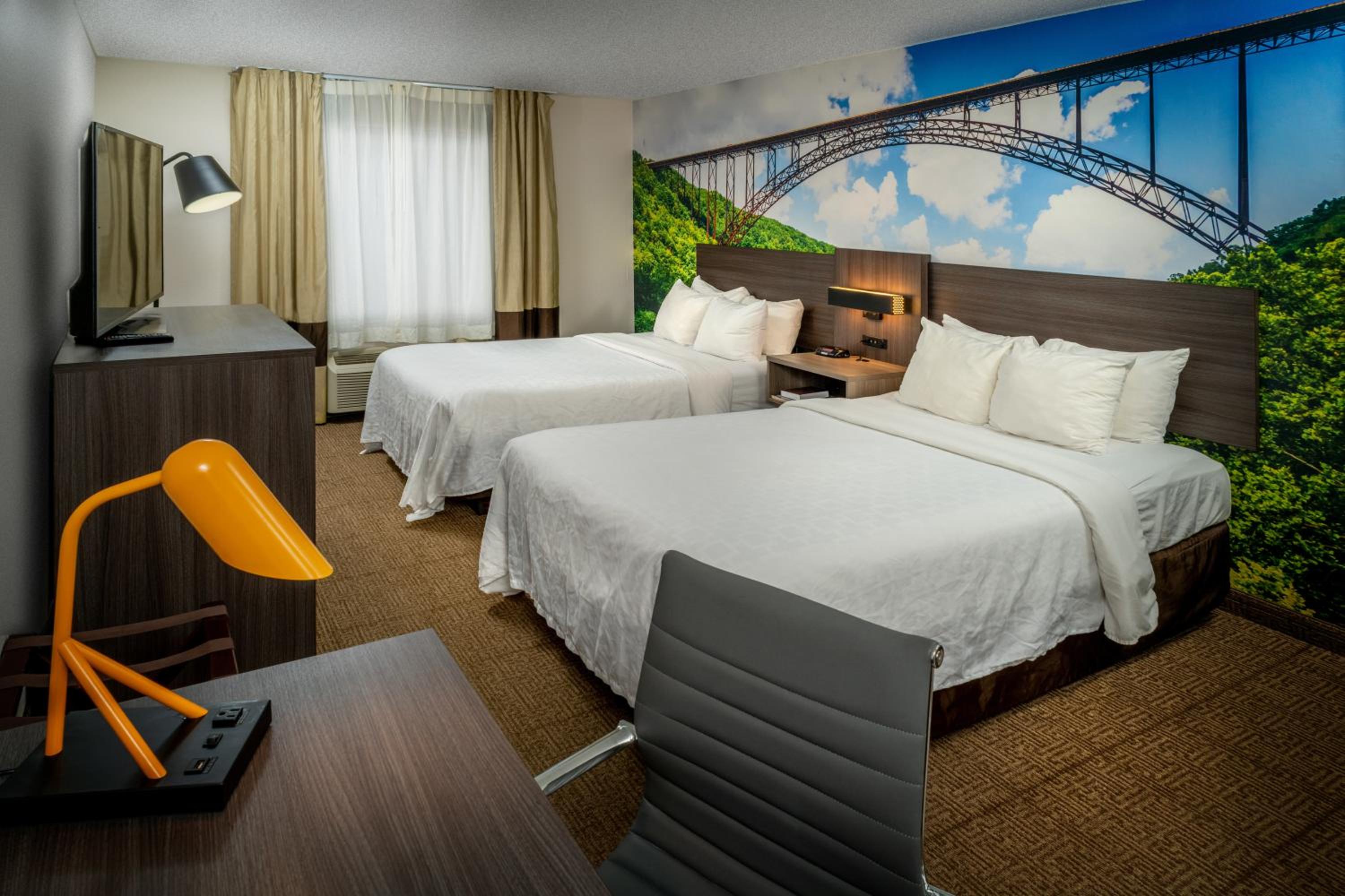 Decorated in relaxing warm colors, the rooms at Clarion Pointe Beckley feature well-lit desks and flat-screen cable TVs for a cozy stay.