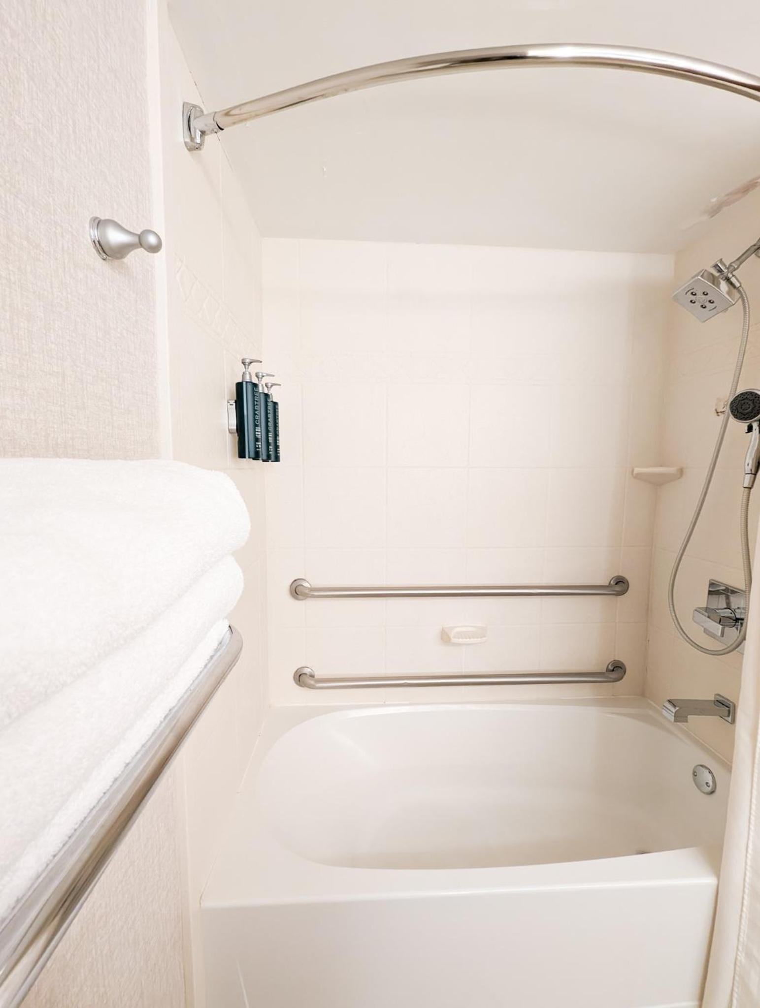 Friendly and helpful staff. Clean property, large rooms and bathrooms.