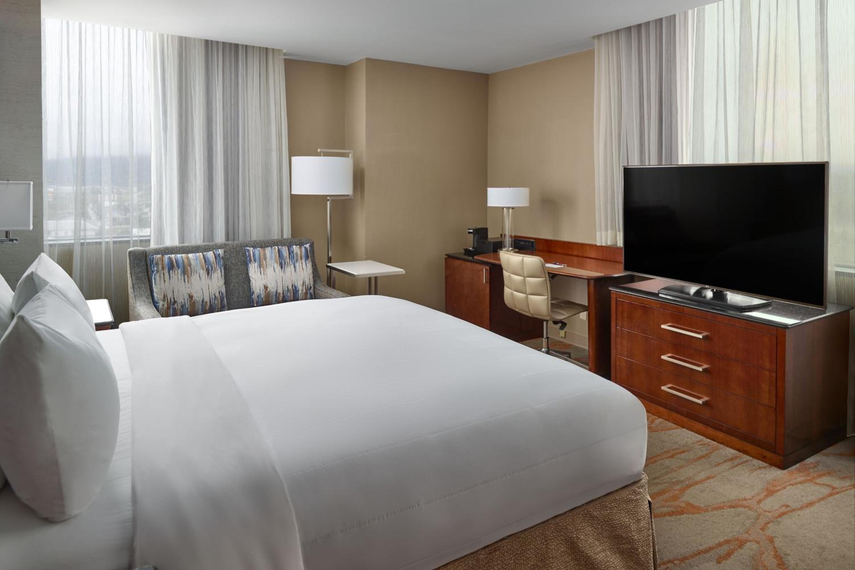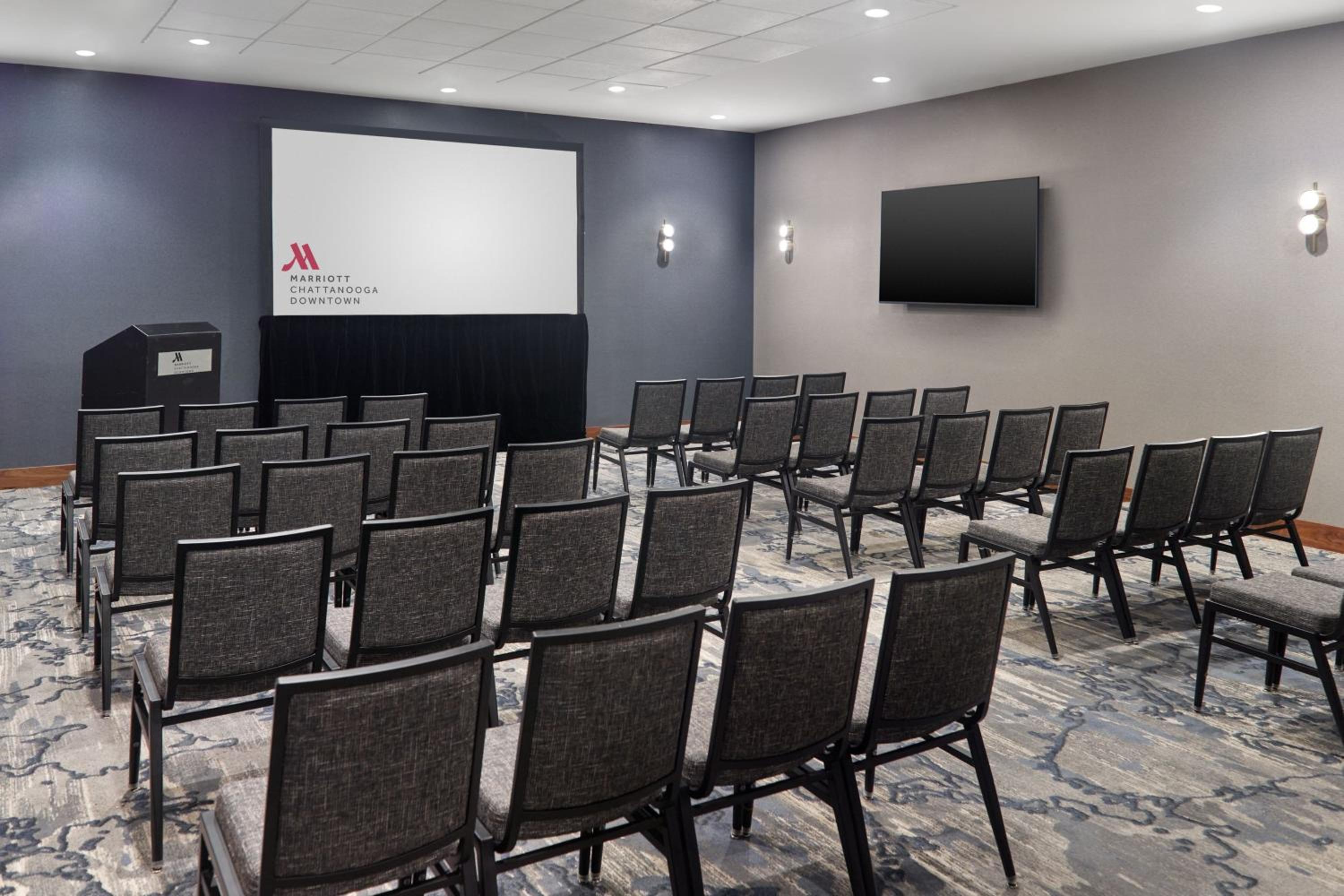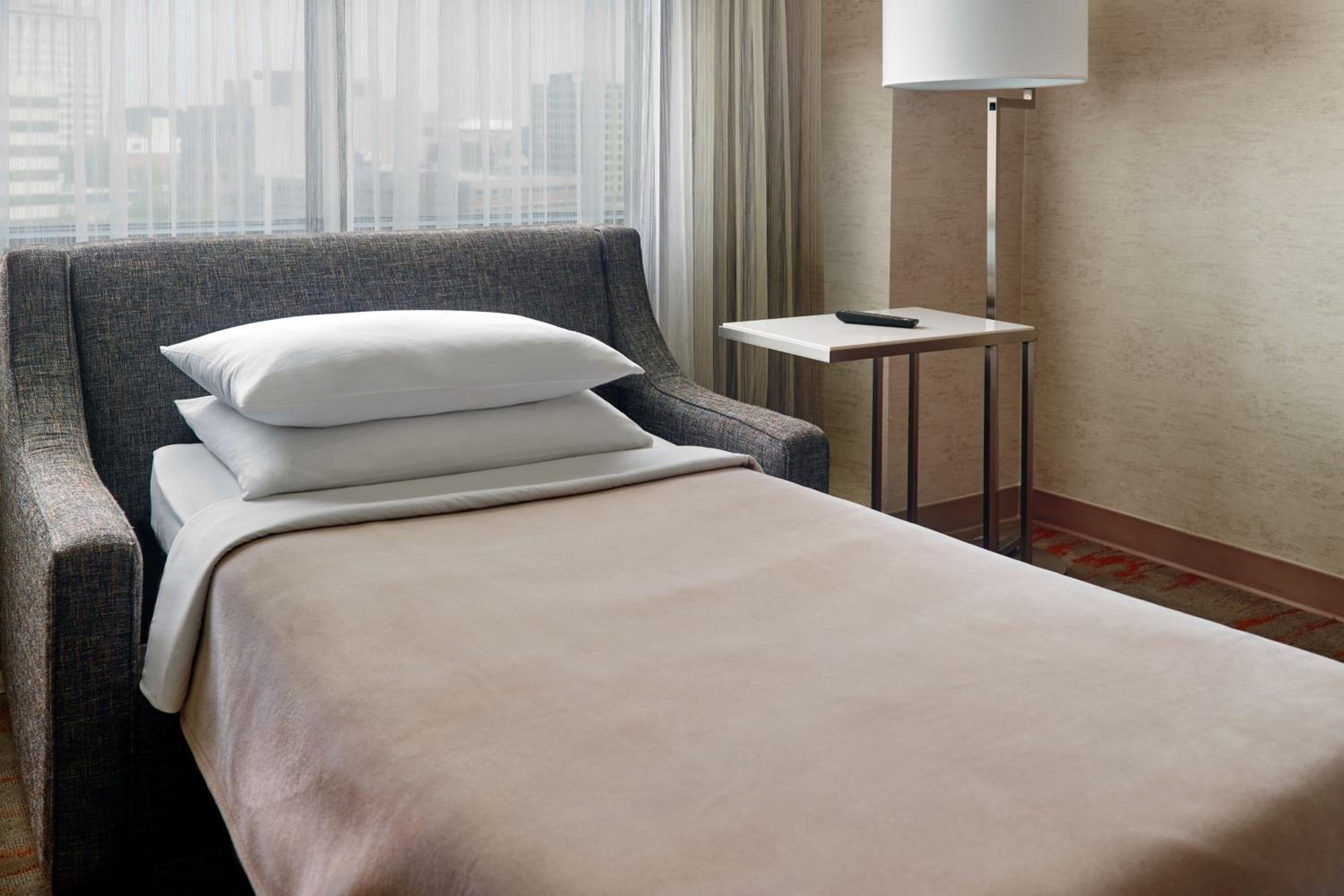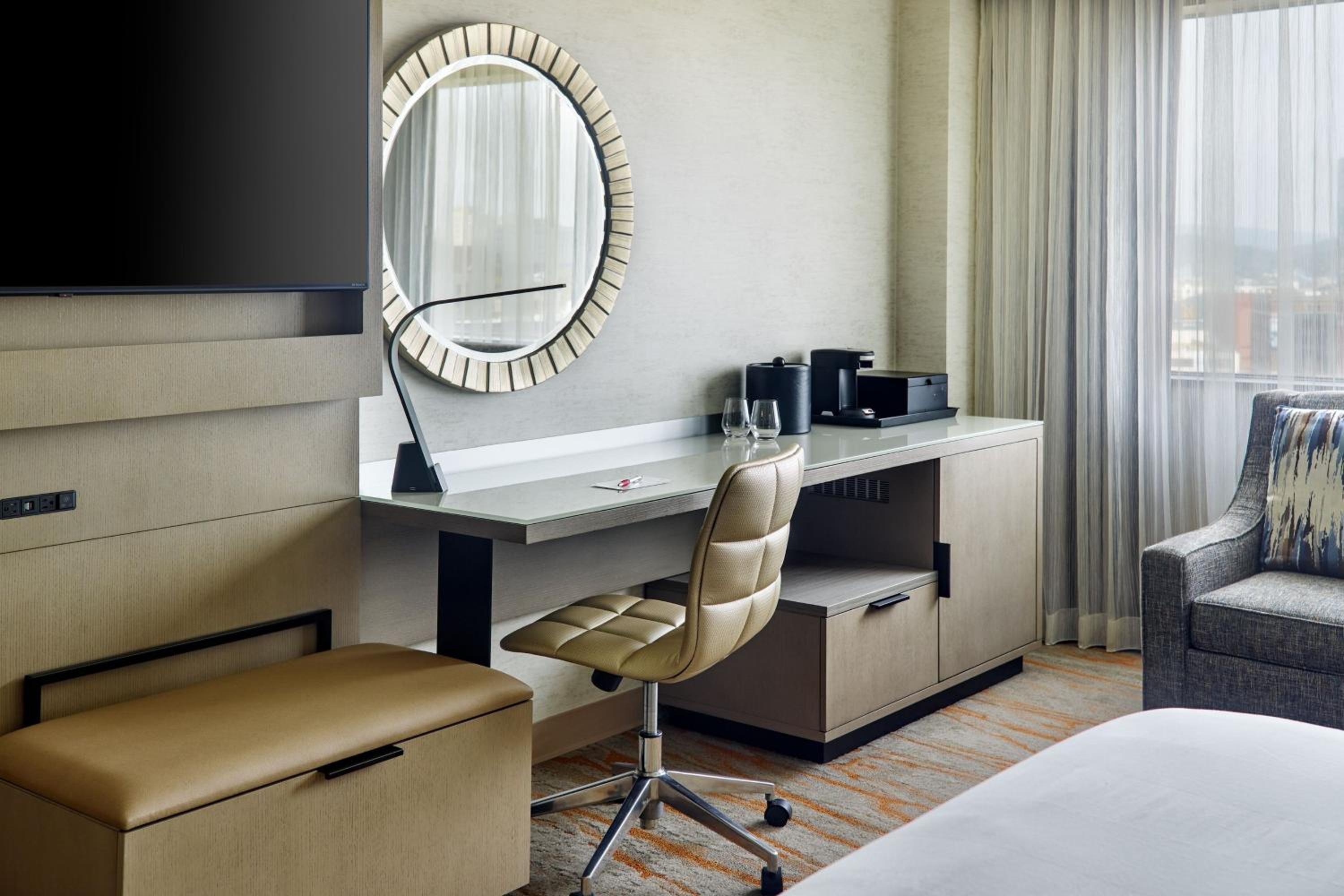 Experience comfort and convenience at our downtown Chattanooga Marriott. Unwind in rooms equipped with modern amenities including a flat-screen TV, refrigerator, and ergonomic chair.