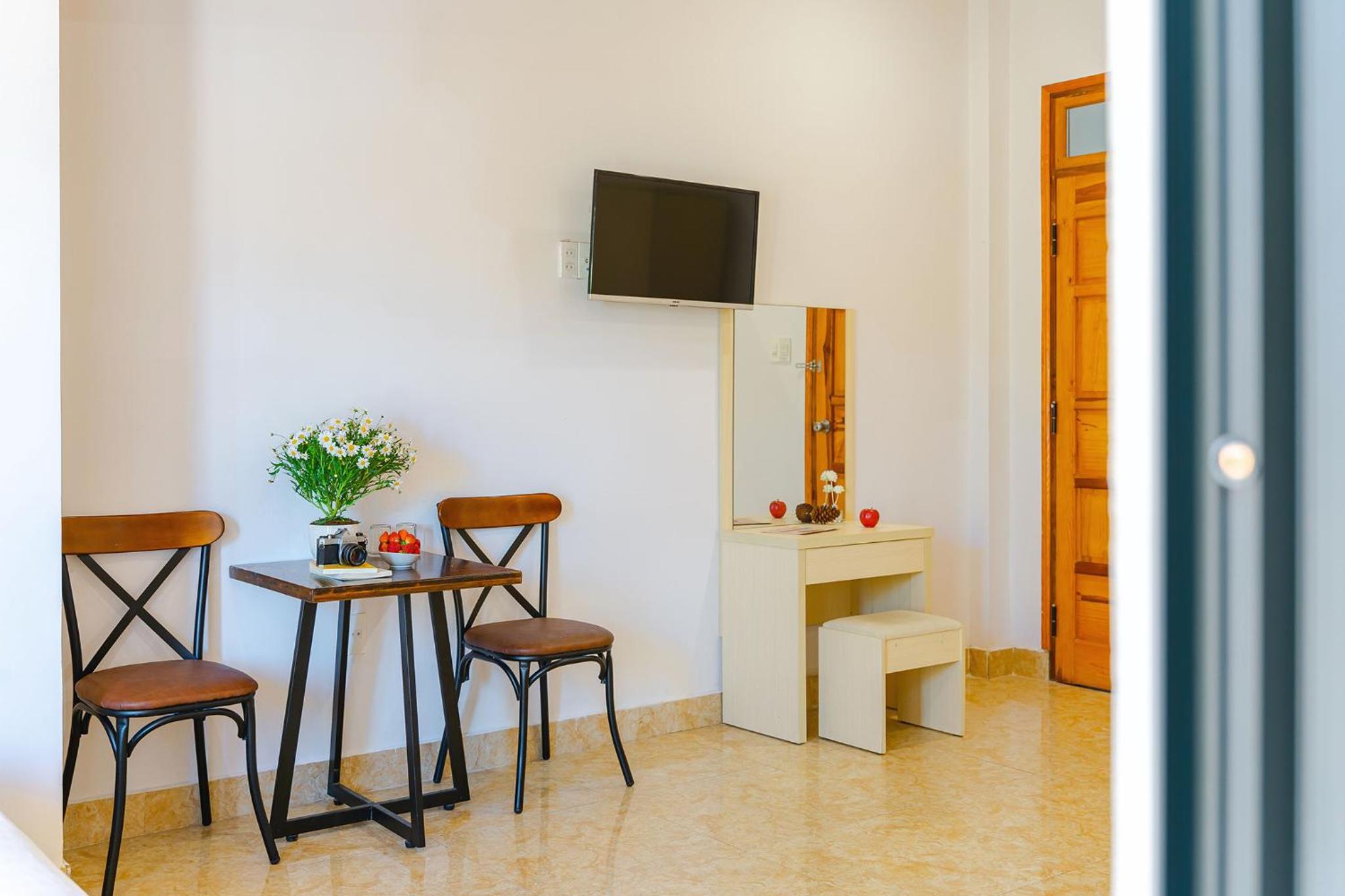 Experience comfort and style at AN Boutique Hotel - STAY 24H in Da Lat. Each room is elegantly furnished with a seating area, flat-screen TV, and a private bathroom, ensuring a relaxing stay for every guest.