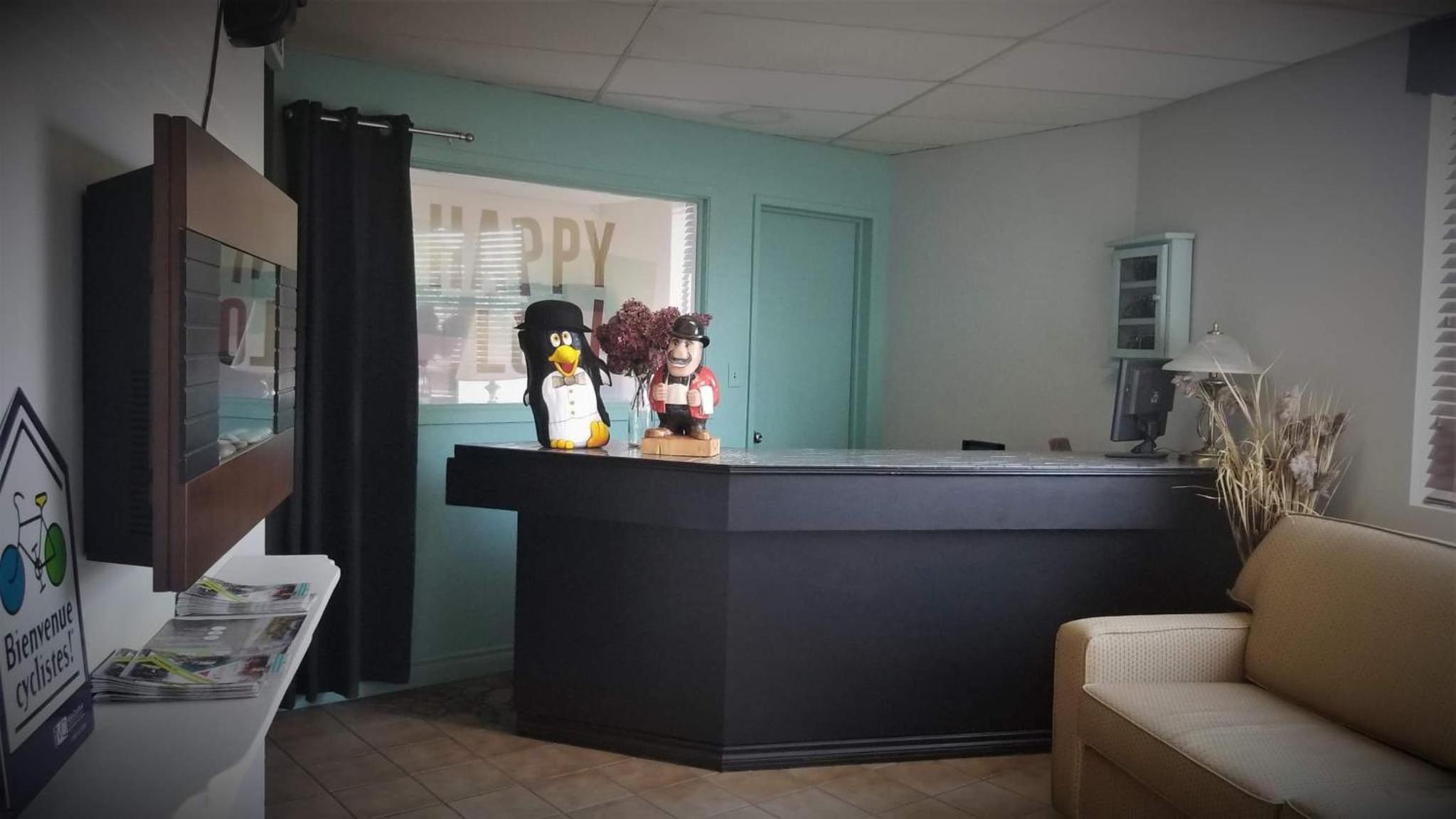 Ils ont le même proprio que le Manoir Etchemin maintenant. Donc oui nous devons allez chercher notre clé là-bas, par contre nous profitons gratuitement des commodités du Manoir: accès a la plage, la piscine et le bar. Et cet accès est très apprécié.