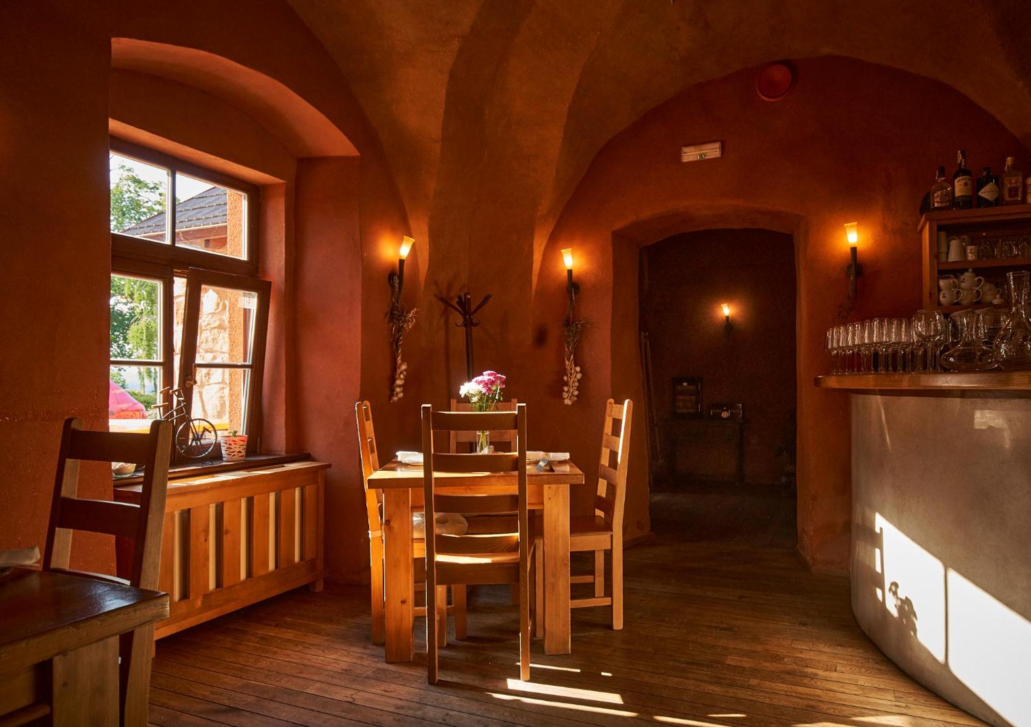 Obsluha by se mohla chovat lépe je ve 21:00 za barem prohlašovat že doufají že půjdou brzo domů. Bylo by fajn se občas od kávovaru ohlédnout když se 20 minut snažím objednat 1 pivo po večeři. Chápu že je v družném rozhovoru s kolegyní kam půjdou pařit když je pátek. Ale nemusí mi říct že teda pivo dostanu ale je poslední. Takové chování hodinu před zavírací dobou a při večeři za 1400,- mi přijde trochu mimo mísu. Dále si pak člověk začne všímat detailů. Proč byla karafa kohoutkové vody na účtu za 80,- Napili jsme se třetinku. Proč ta samá karafa zůstala í na snídani s upitou třetinkou a to samé u dalšího stolu. Proč chybí dveře v koupelně na sprcháči. Proč chybí hlavice na topení, aby jsme si nepritopili v noci ? Ano bylo docela chladno. Druhá věc která mě opravdu dostala moje radost z minibarem se rozplývá jak pára nad hrncem. Lednička je vypnutá a víno teplé. Ráno opět obsluha ani netuší jak účtovat jedno víno z minibaru. Kazite si ty výborná jídla vším okolo. Je to škoda.