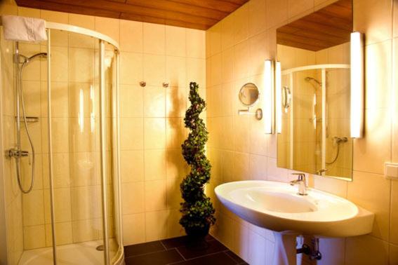 Indulge in the comfort of rooms at Haus Krone adorned with fine wooden furnishings in a charming cottage style. Each room includes a cable TV, work desk, and a private bathroom for your convenience.