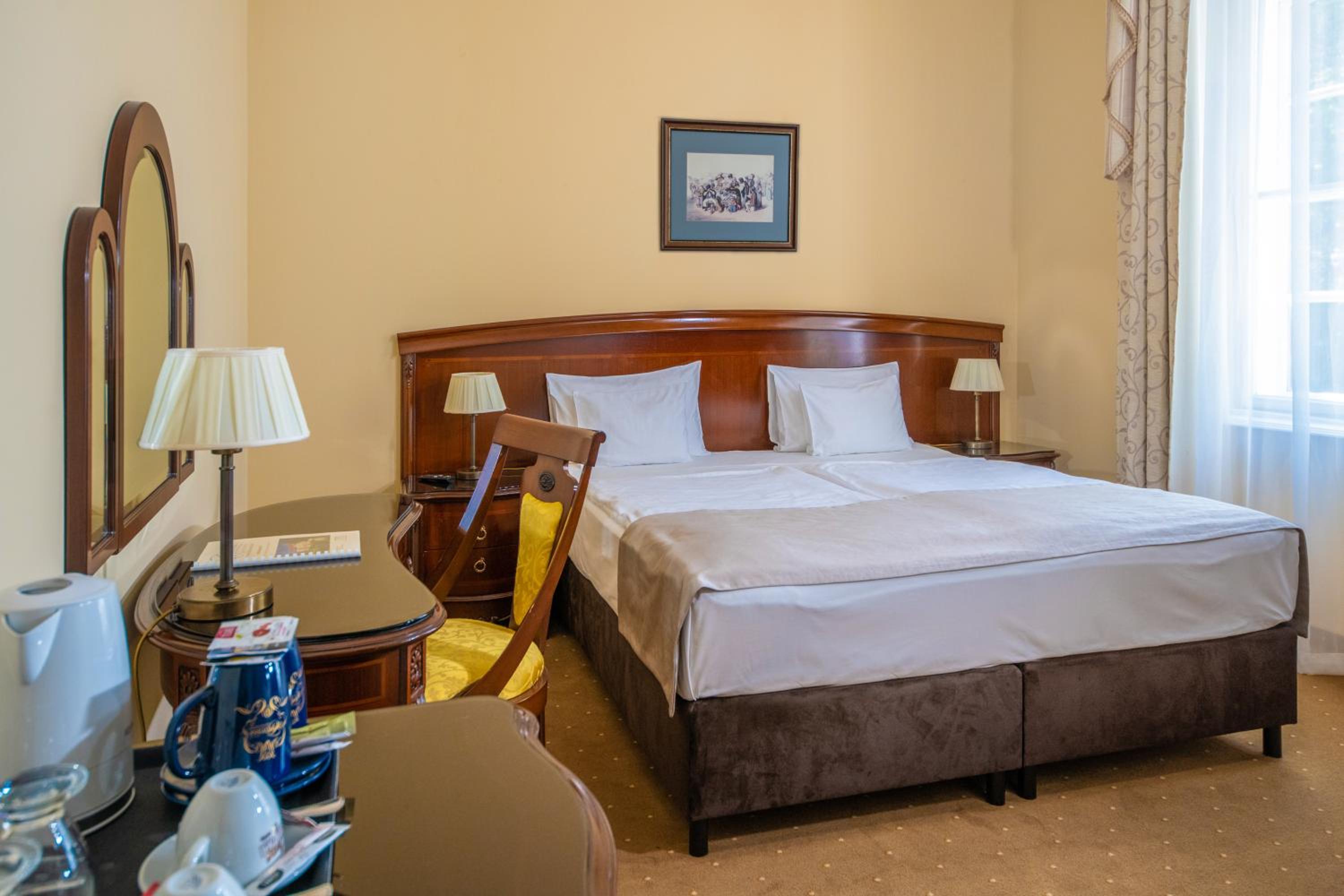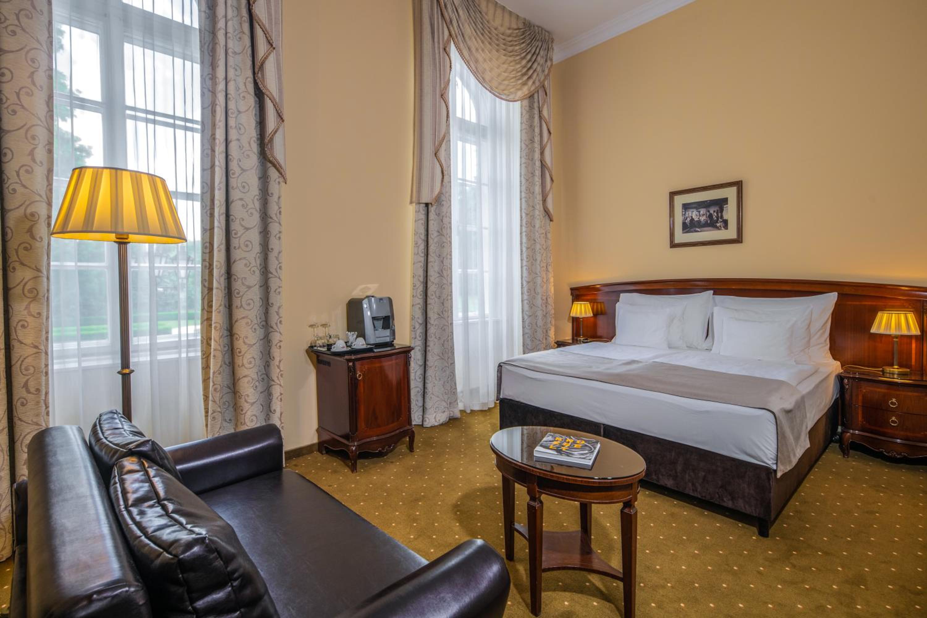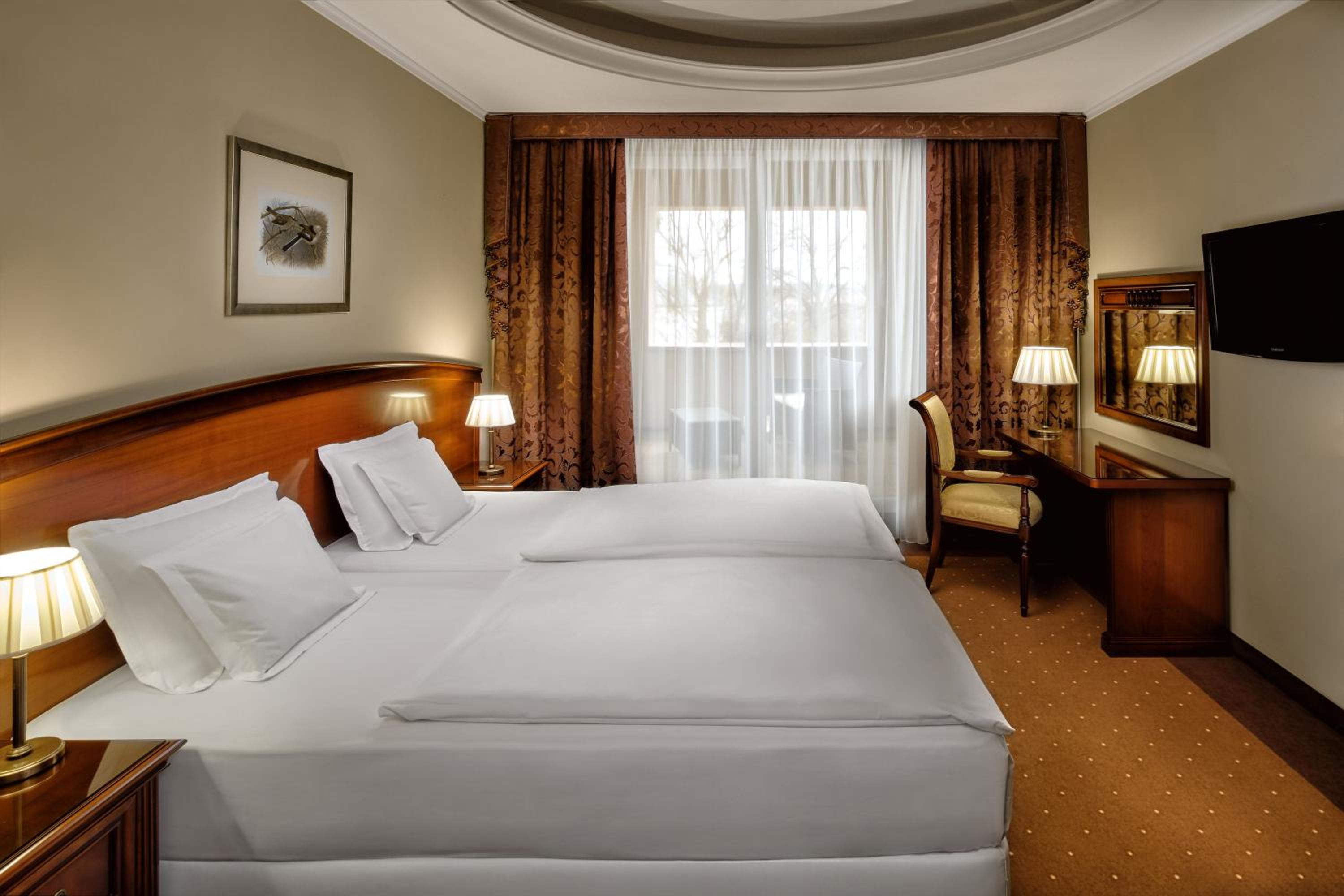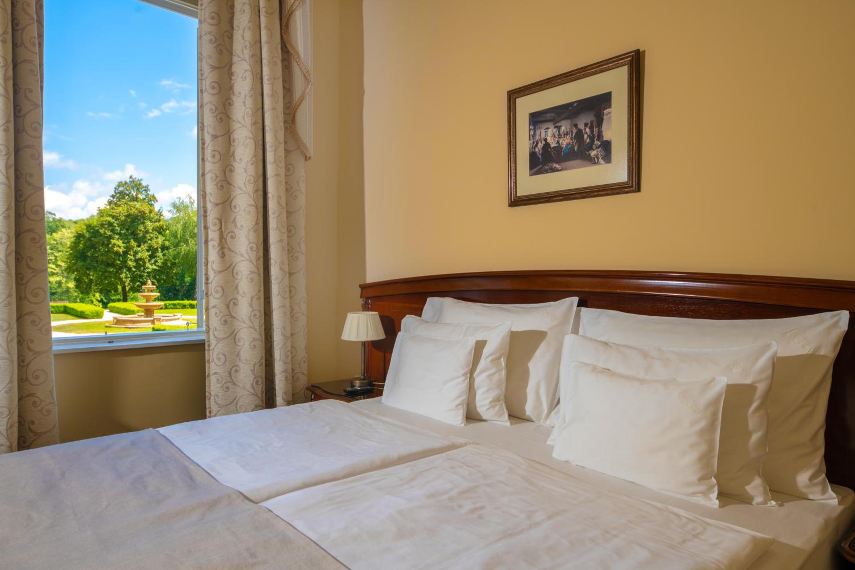 Indulge in gourmet Hungarian and international cuisine at the elegant Elizabeth Restaurant or enjoy the cozy atmosphere of Cyrano Restaurant and Bar. The barbecue terrace also provides a charming setting for dining. Culinary delights await at every corner of the castle hotel.
