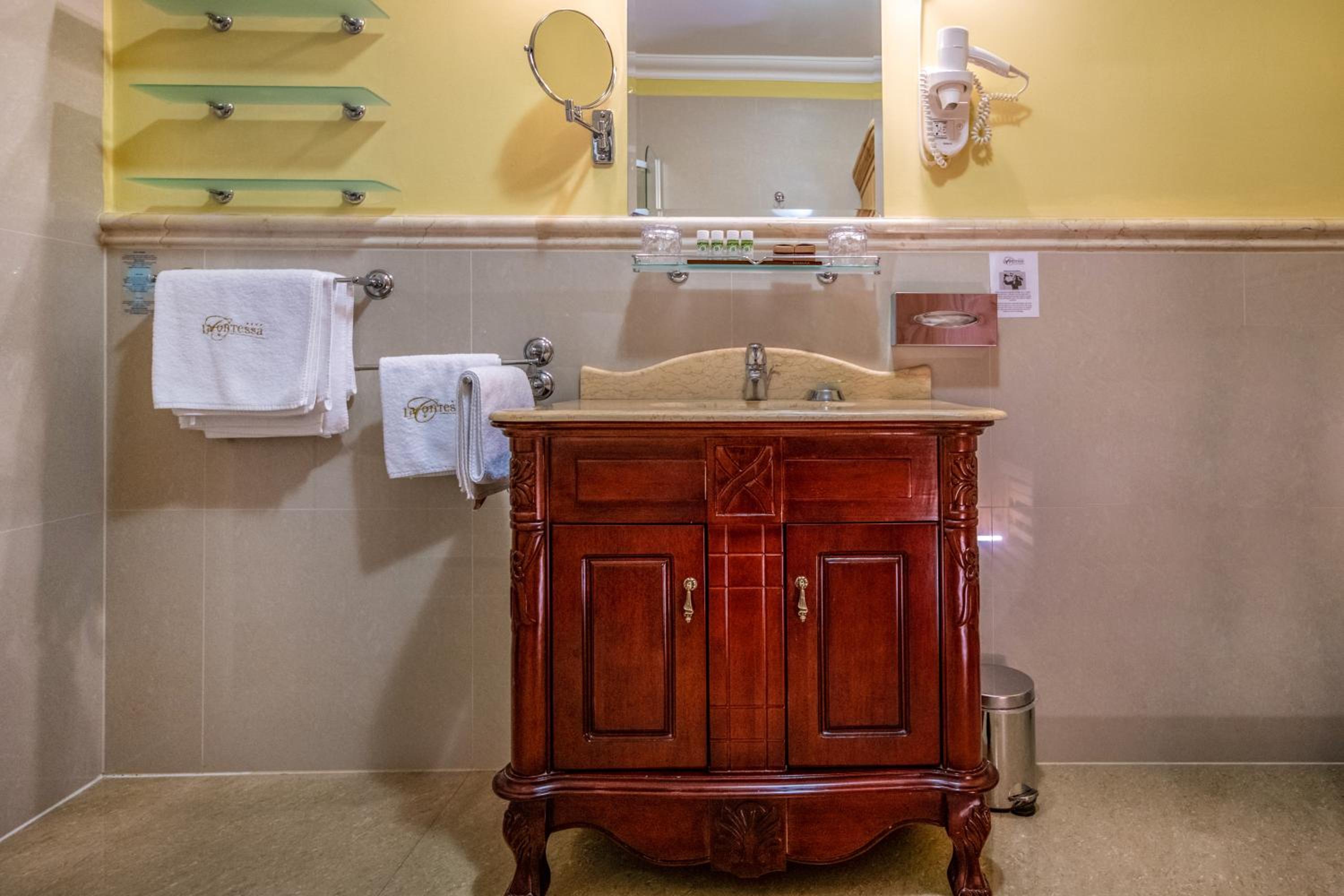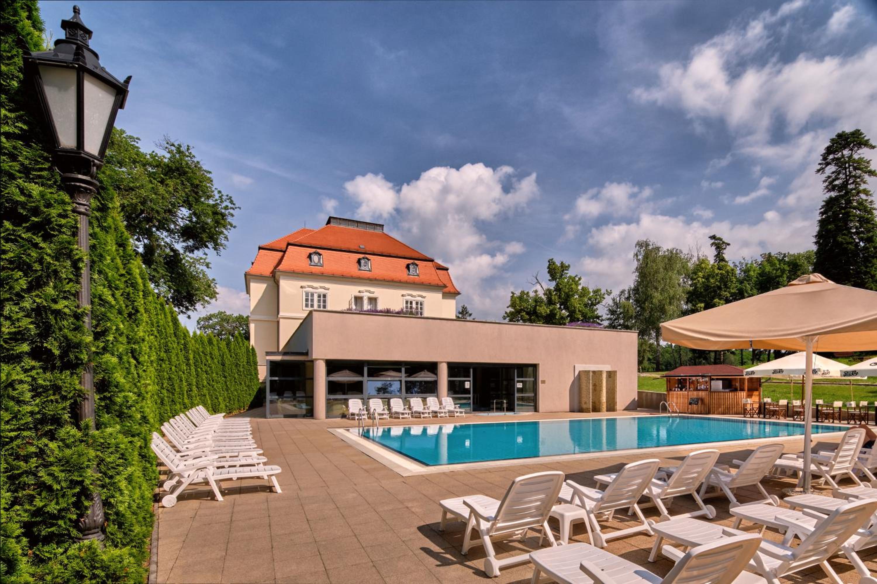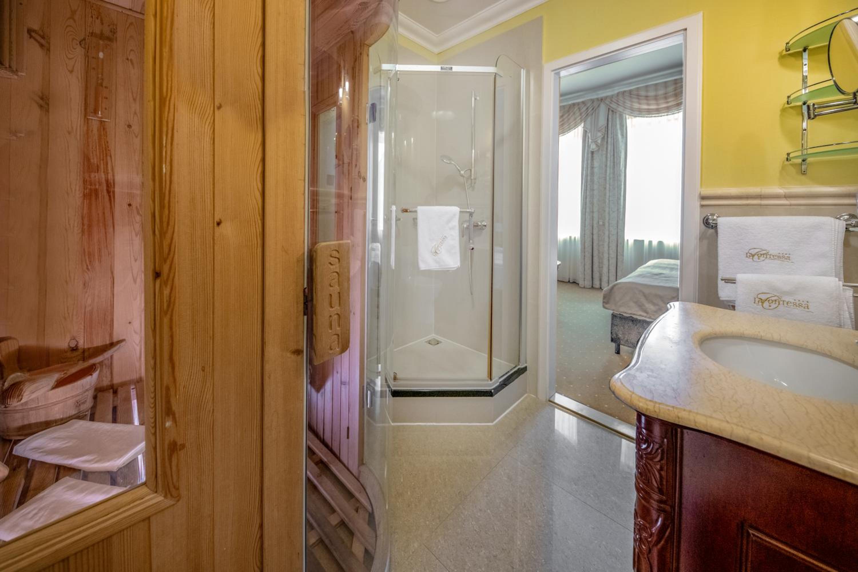 Featuring a 650 m² wellness area, including an indoor pool, the La Contessa Castle Hotel offers a luxurious retreat for guests. With panoramic views of the surrounding landscape and a variety of sauna options, hot tub, and heated outdoor pool, relaxation is guaranteed.