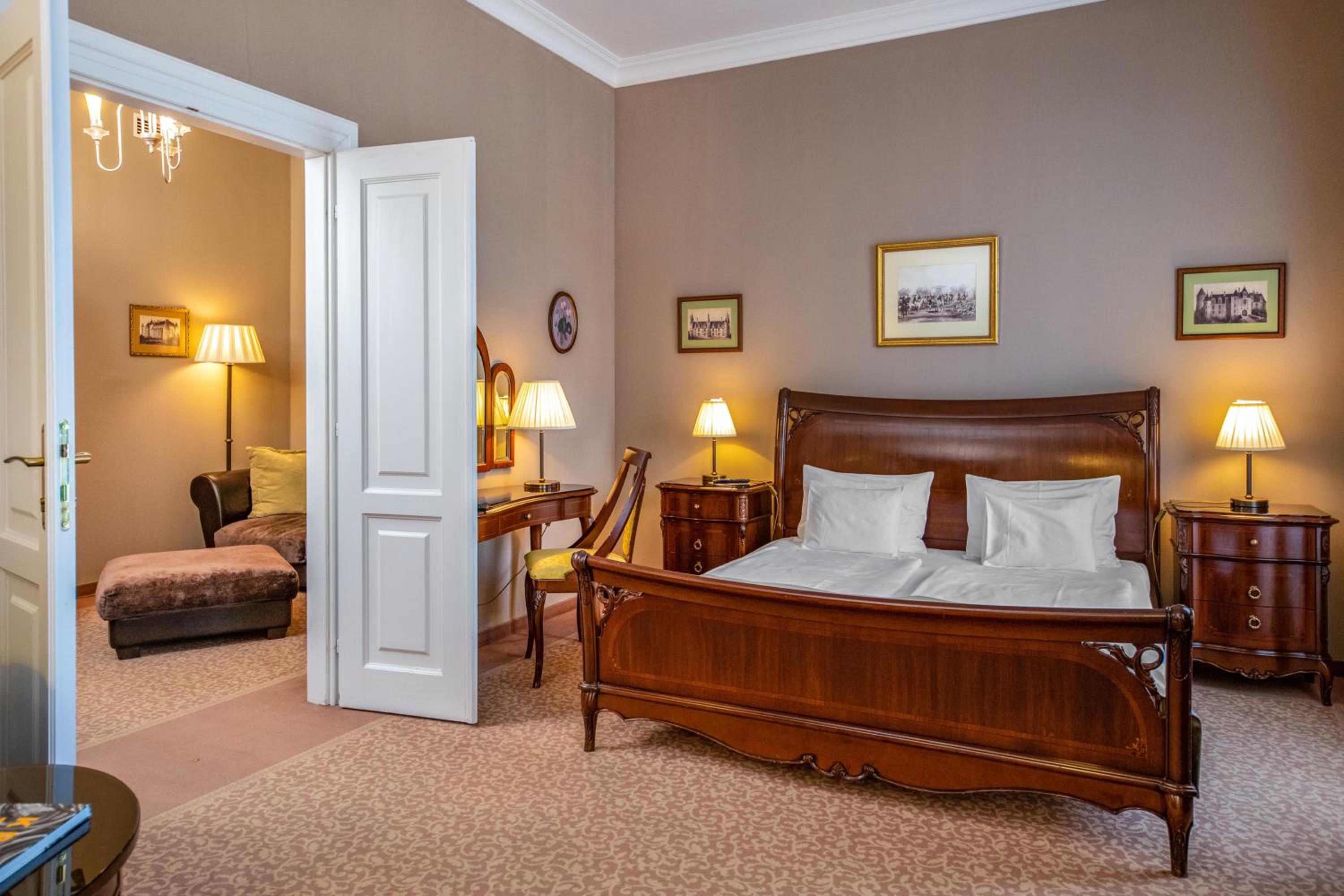 Experience a blend of historic charm and modern comfort in the rooms furnished with stylish period furniture. With high ceilings and free wired internet access, the accommodations in the main castle building and the park building offer a unique stay for every guest.