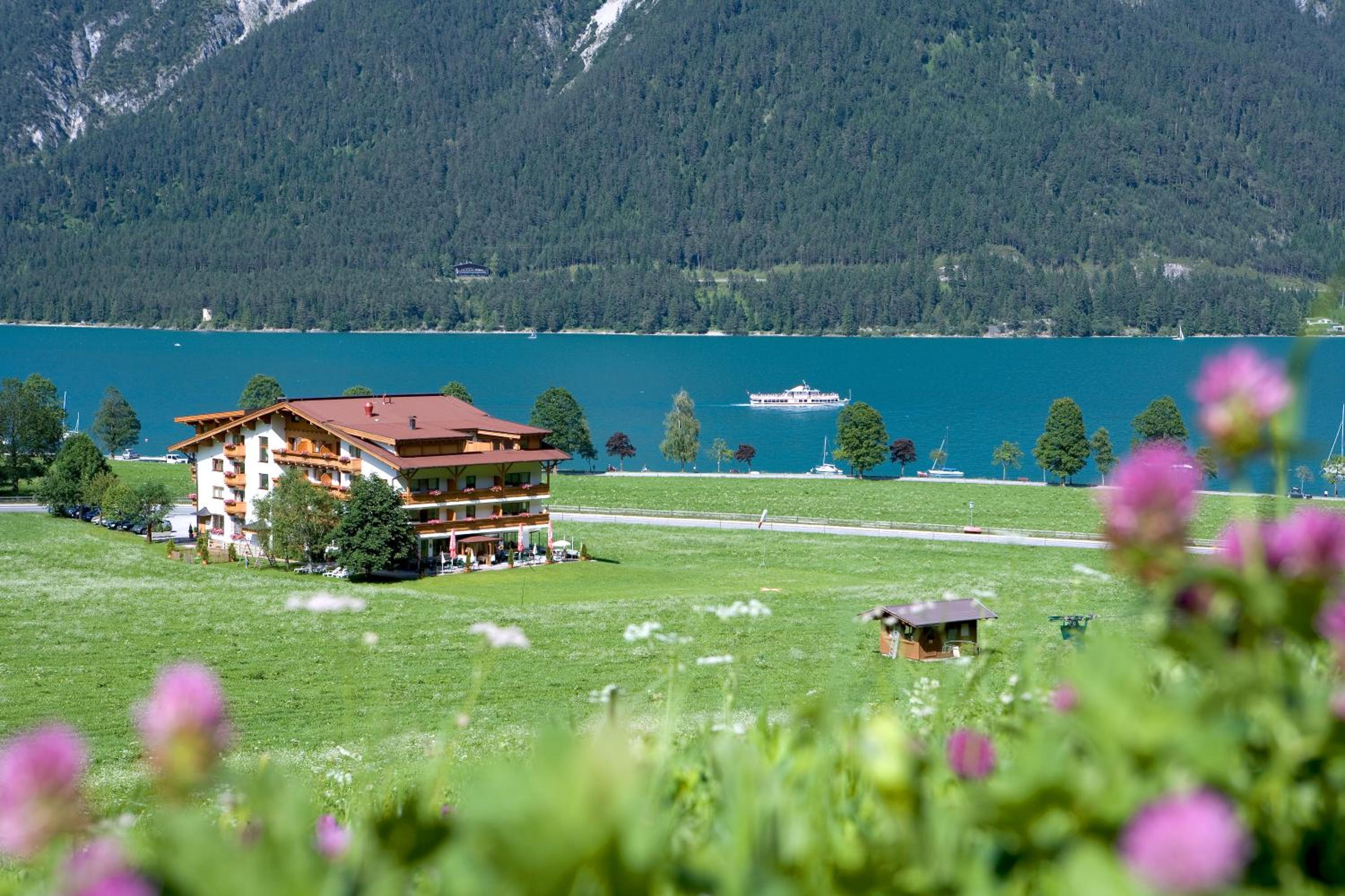 Experience breathtaking views of Lake Achensee and the surrounding mountains from your private balcony at Bergland Hotel.