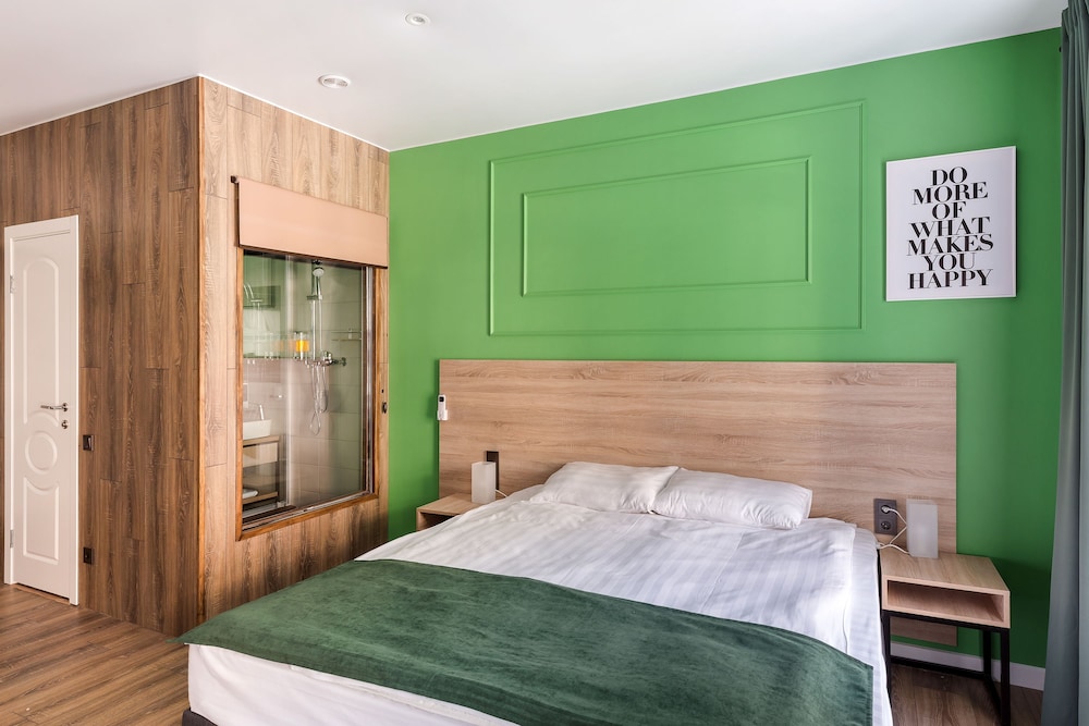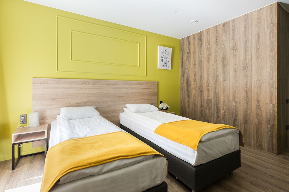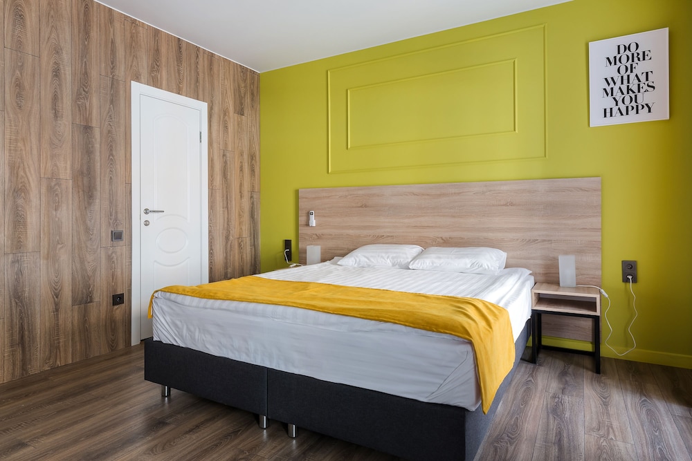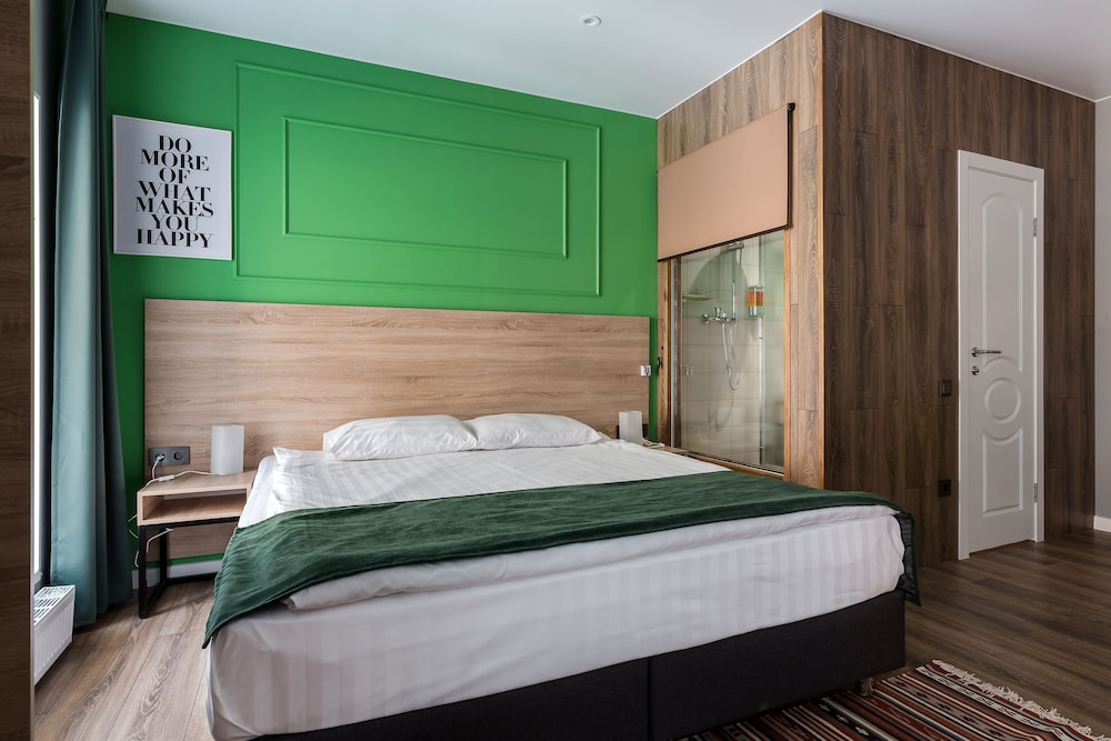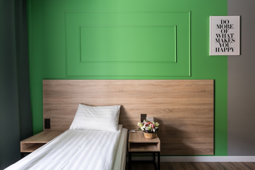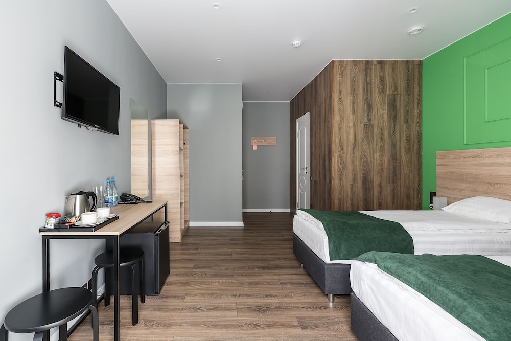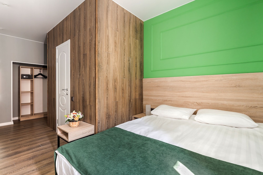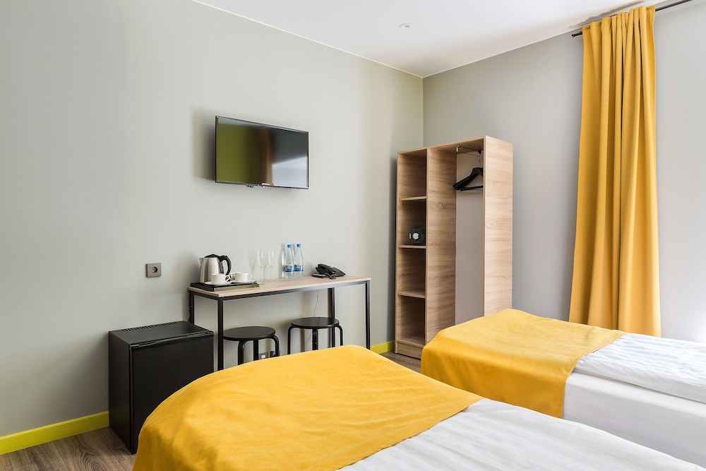 Новый отель, удобно расположен. Доброжелательный персонал. В одной части отеля еще идет ремонт, слышны звуки от строительных работ. В номерах чувствуется сильный запах от ламината, которым облицована часть стены в номере. Самый главный недостаток - слышимость в номерах, а точнее, полное отсутствие звукоизоляции. Слышен даже очень тихий голос в соседнем номере, звонок телефона на вибрации, не говоря уже о слышимости от телевизора и других более громких звуков. Вытяжка в туалете гудит очень громко, ее слышно и из соседних номеров. Входная дверь в номер несерьезная, ключ с большим и тяжелым брелоком. Нет звукоизоляции и со стороны коридора, все очень слышно, спать невозможно. Нет лифта.