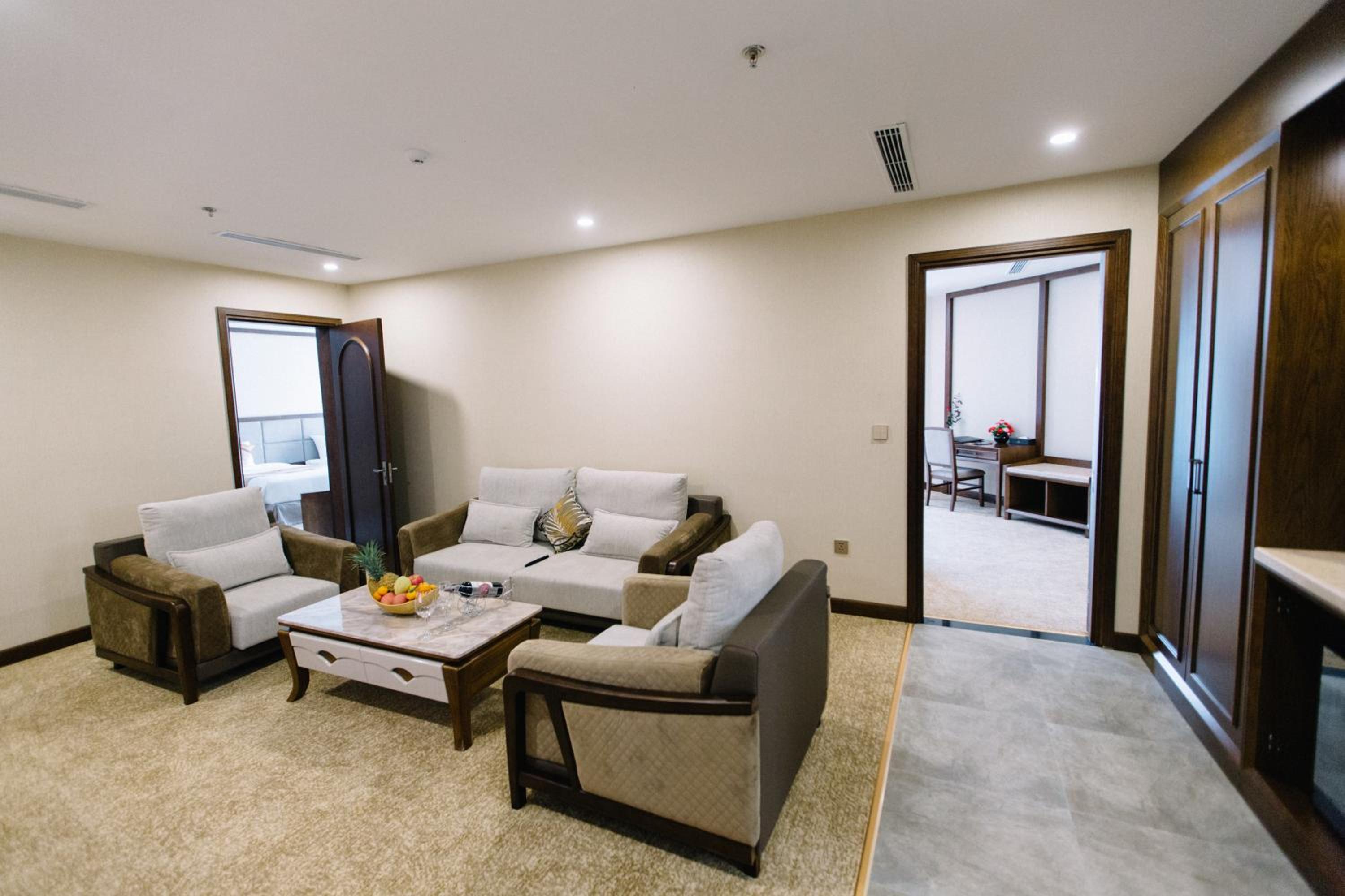 Experience comfort and style at Duc Huy Grand Hotel in Lao Cai. Each air-conditioned room is equipped with modern amenities including a flat-screen TV, fridge, and a private bathroom. Some rooms even offer stunning mountain views from a private balcony.
